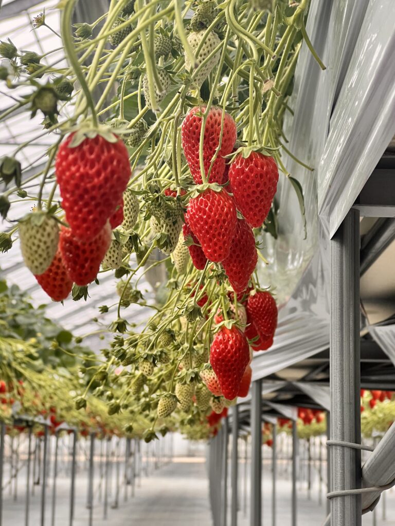 いちごがりは、ハウス内で行いますが、この日は曇り空。雪がちらつくほどの寒さ。晴れていれば半袖でもいいくらい。この日は屋外と変わりない体感です。でも、イチゴが冷えてておいしさが数倍にアップしています。こういう天気でイチゴ狩りをするのは初めてなので、とても新鮮でした。いちご狩りは曇りの日がベストです。