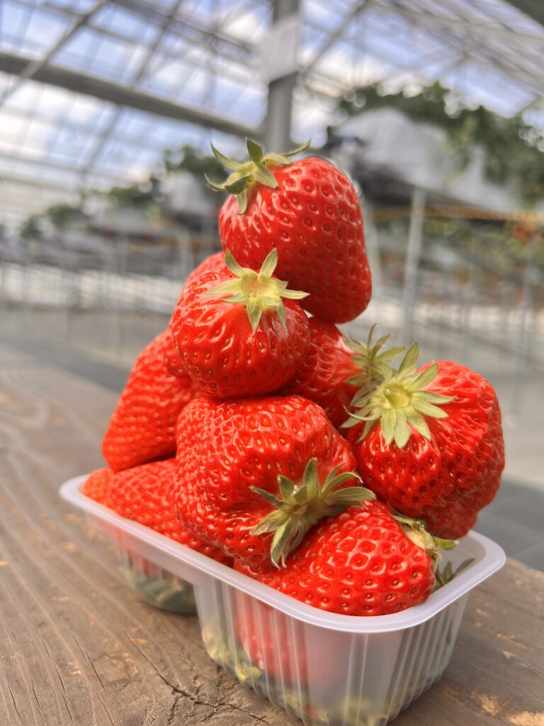 甘味の強いあきひめと、酸味とコクの紅ほっぺ。写真は紅ほっぺです。あきひめはもう味が薄くなっていました。そろそろ旬も終わりを迎えそうです。