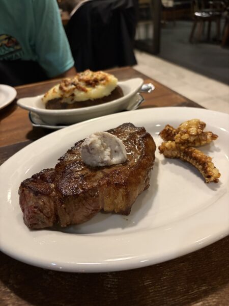 これで67ドル、日本円で約10,000円する高級ステーキで、やはり美味しく!