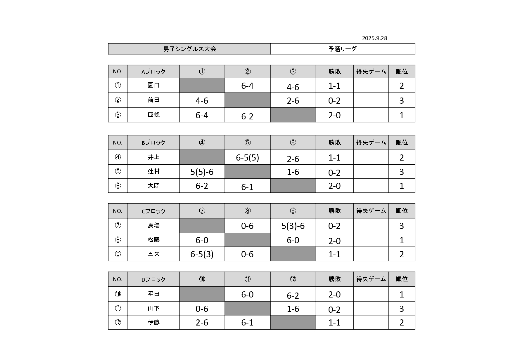 9/28(日)に2025年第9回男子シングルス大会~YSGオープン~を開催しました!!