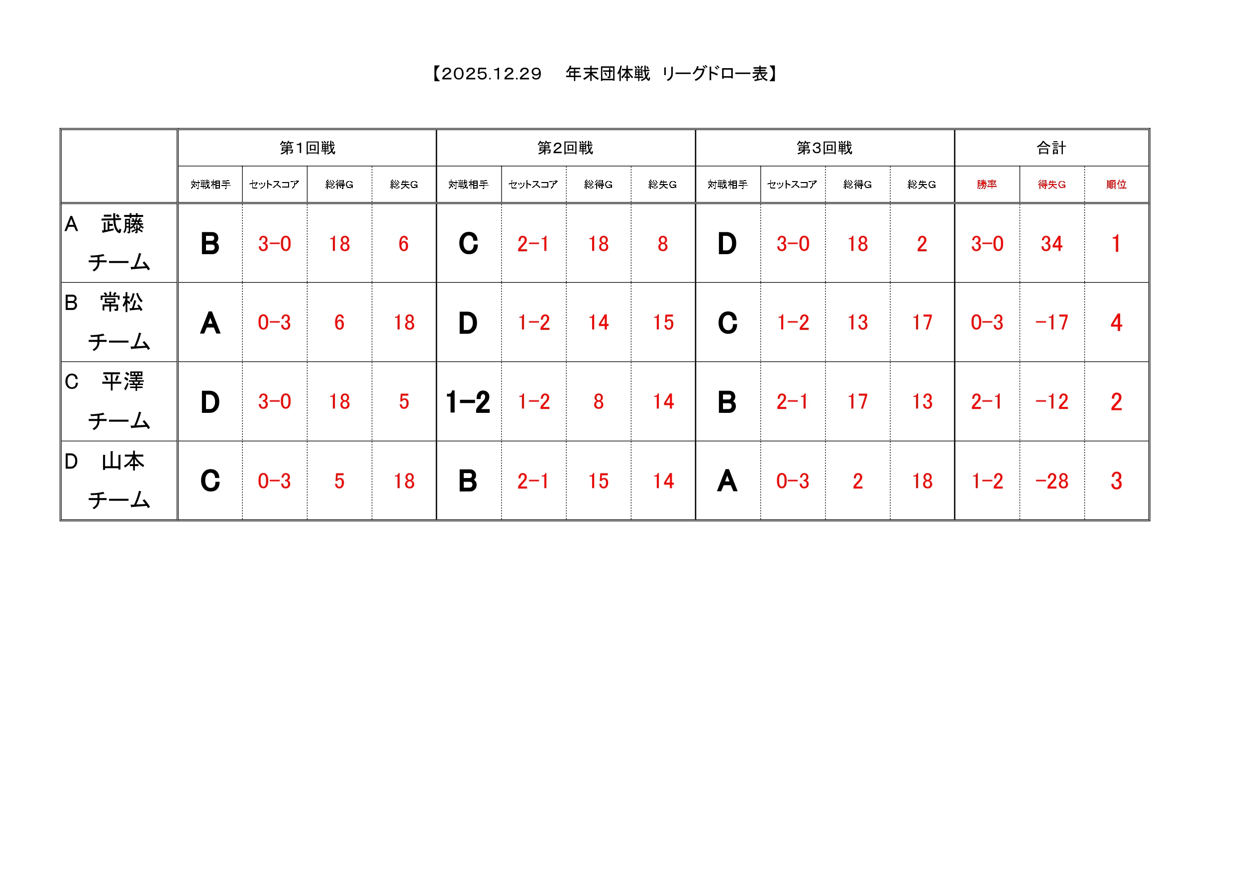 年末の恒例イベント、YSG年末団体戦を12/29(月)に行いました!