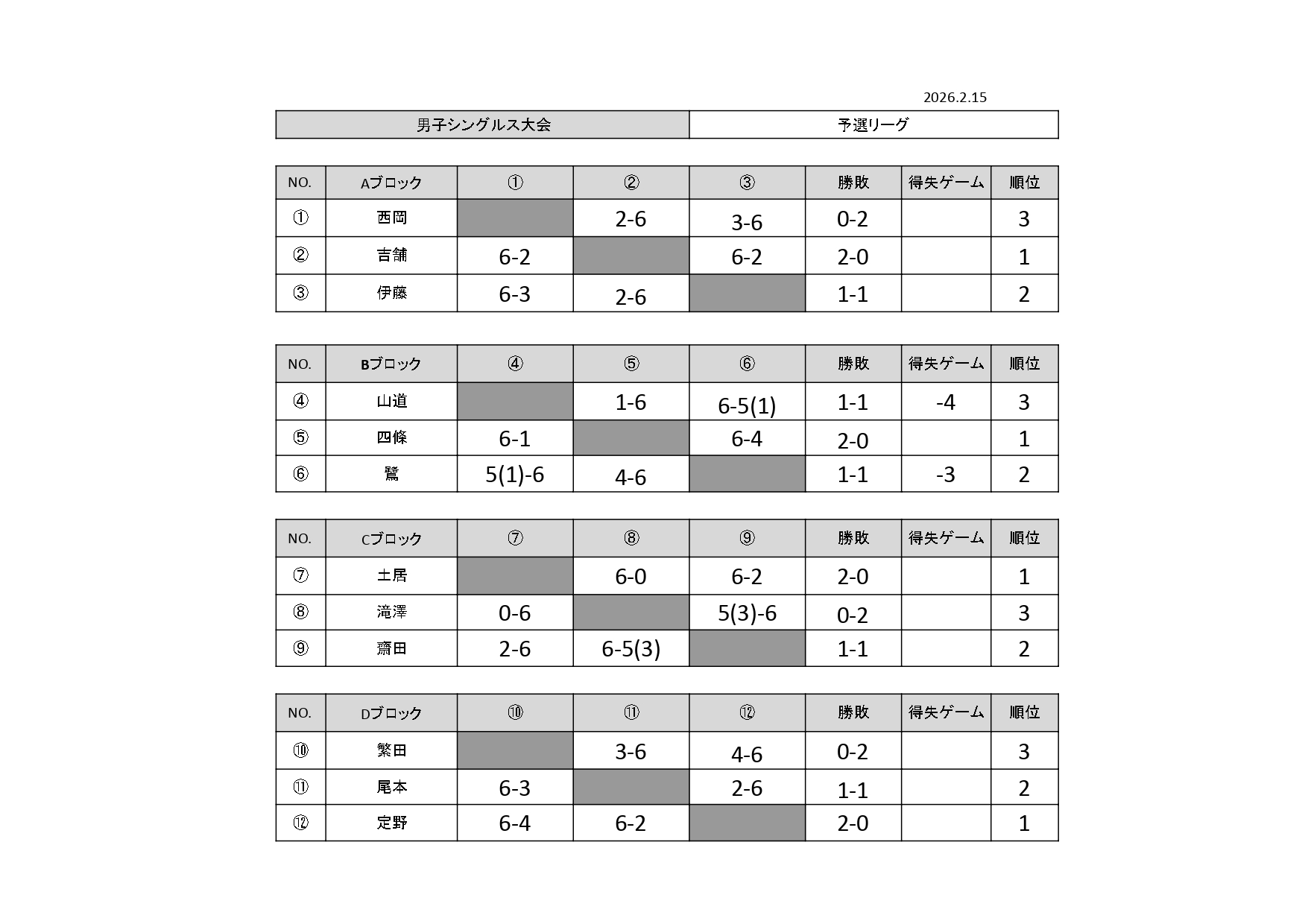2/15(日)に2026年初開催となる男子シングルス大会~YSGオチャレンジャーズ~を開催しました!!