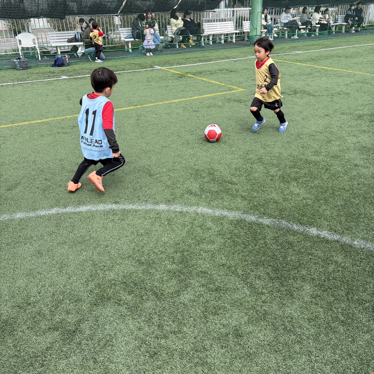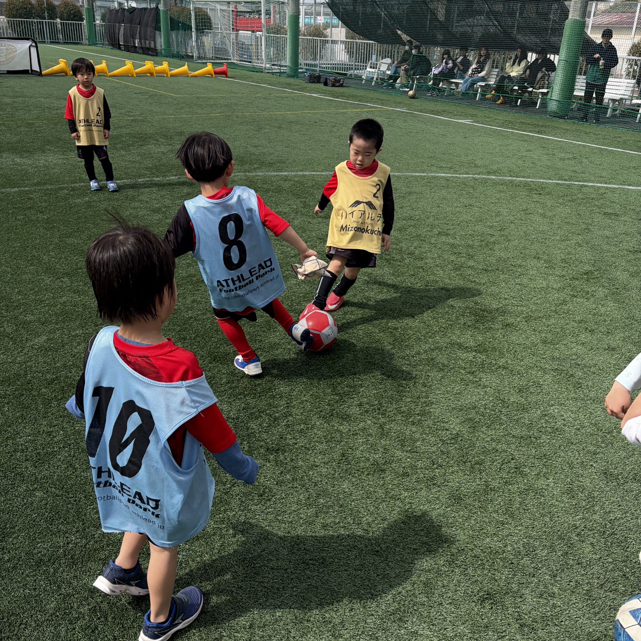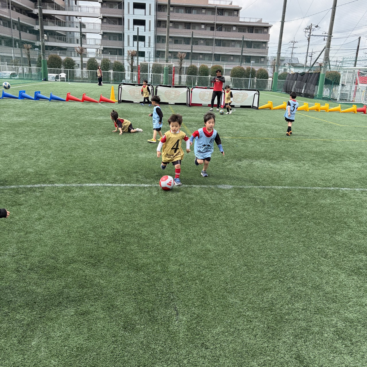 3/28(土)9:30~10:30、「年少・年中対象ゲームイベント」を開催致しました! 11名の子供達にご参加頂きました!ありがとうございます。 2チームに分け、試合をたくさん行いました! 最初は遠慮がちだった子供達が少しずつ目の前のボールを一生懸命追いかけ、ゴールを目指してプレーしていました! 最後まで楽しそうにプレーしていた子供達がとても印象的でした! 皆様のご参加、ありがとうございました。 またのご参加を心よりお待ちしております。