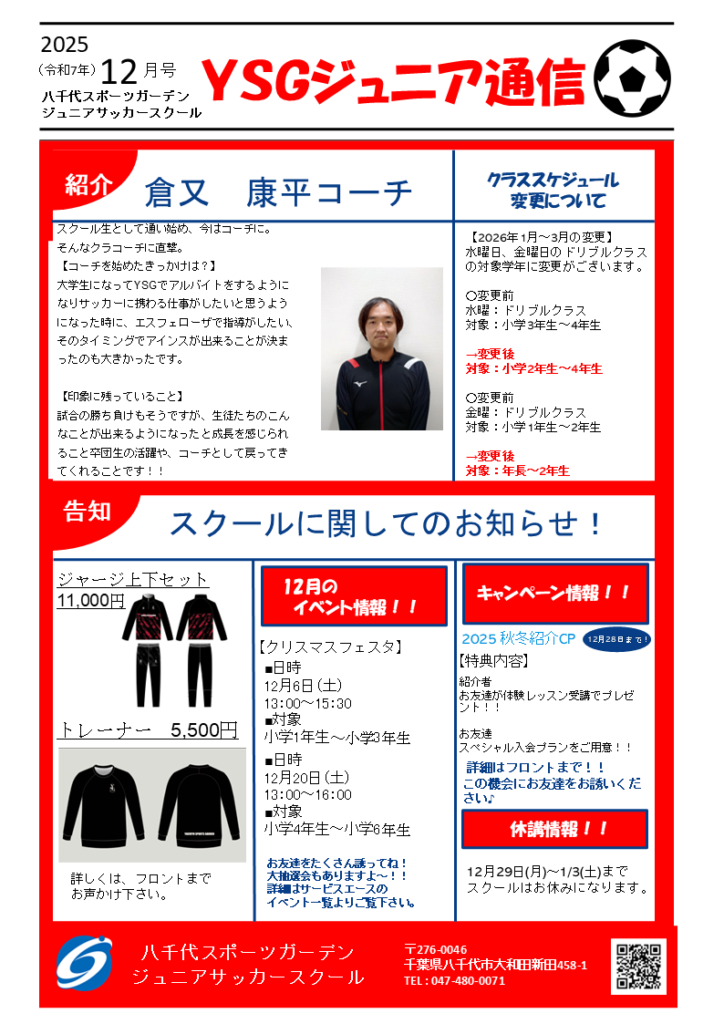 12月号は「くらコーチのご紹介」と「スクールに関するご案内」です!