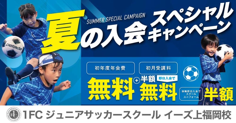 こんにちは! 1FCジュニアサッカースクール[イーズ上福岡校]では、『夏の入会スペシャルキ……