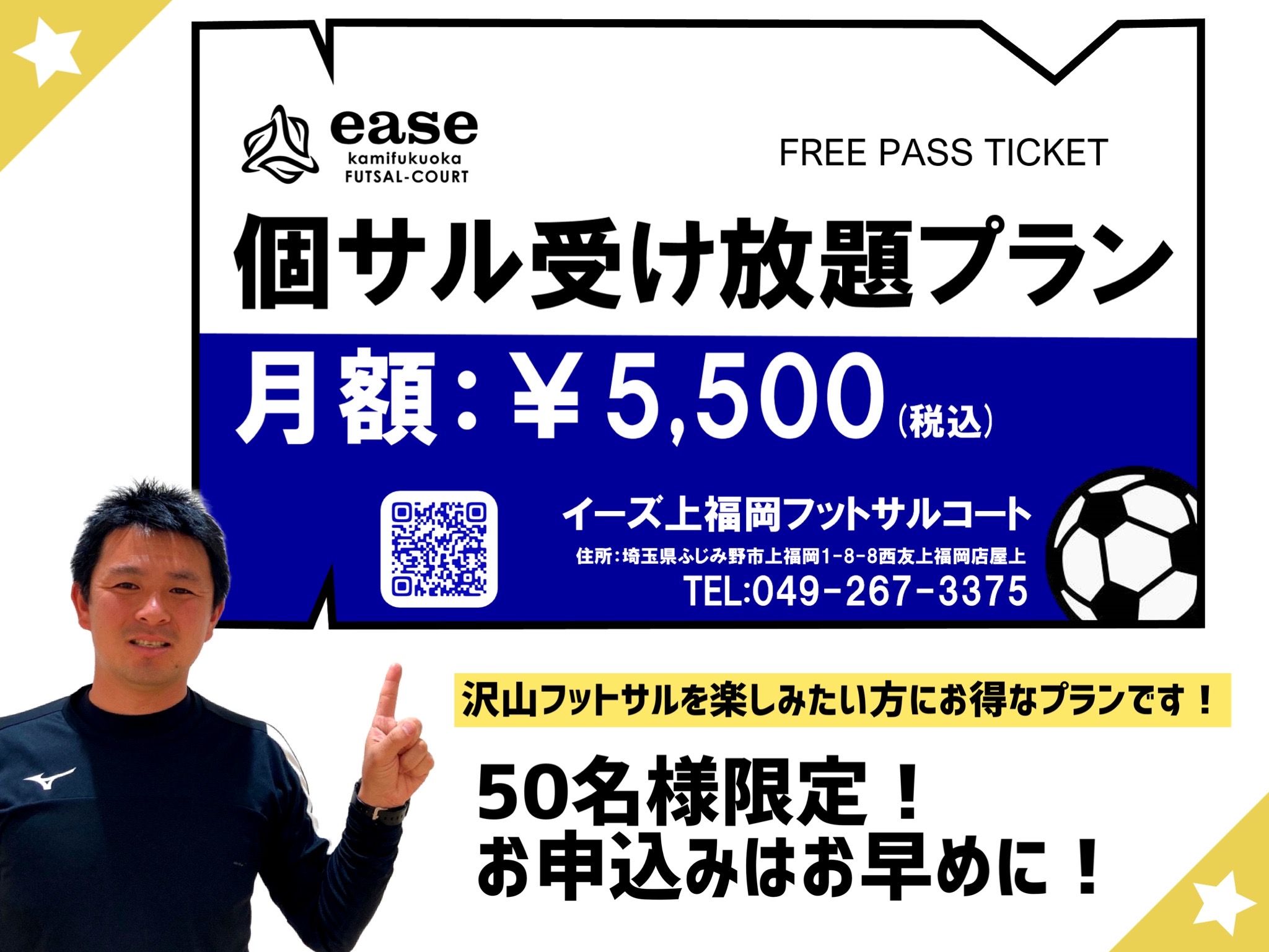 イーズ上福岡フットサルコート 4月より新プラン誕生! 『個サル受け放題プラン』 日頃……