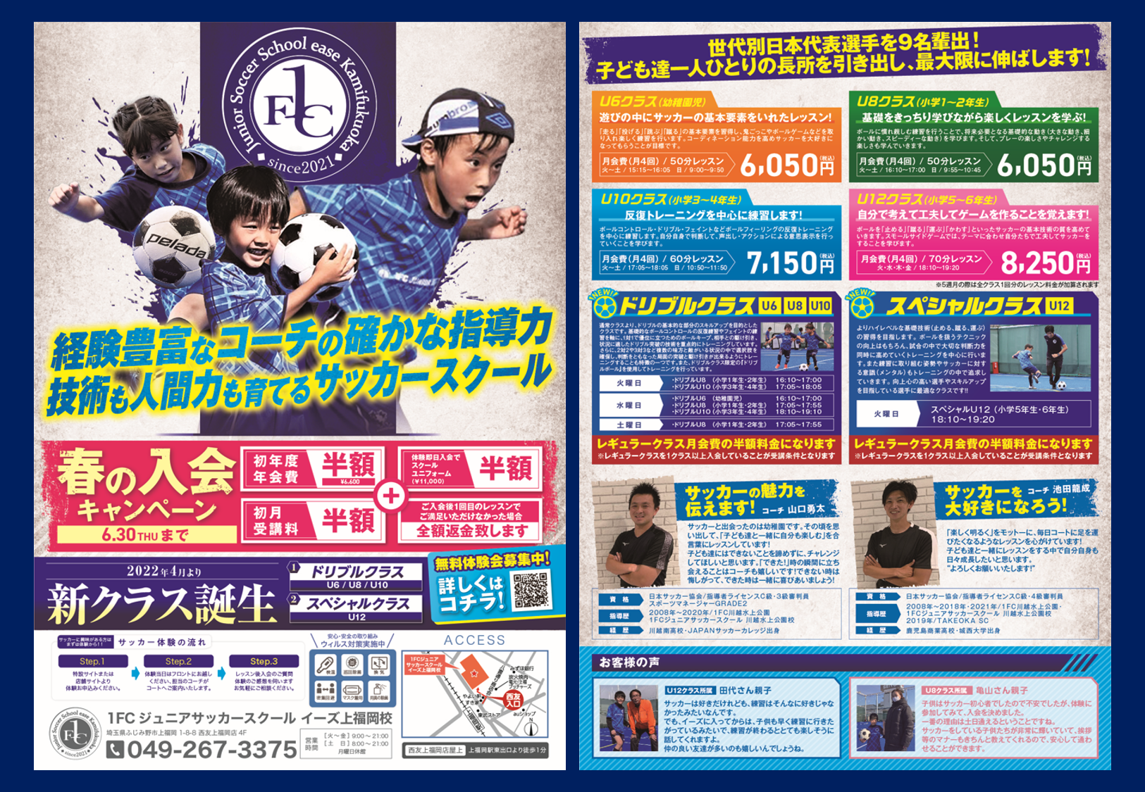 1FCジュニアサッカースクール上福岡校では4月よりドリブルクラス、スペシャルクラスを開校します!……