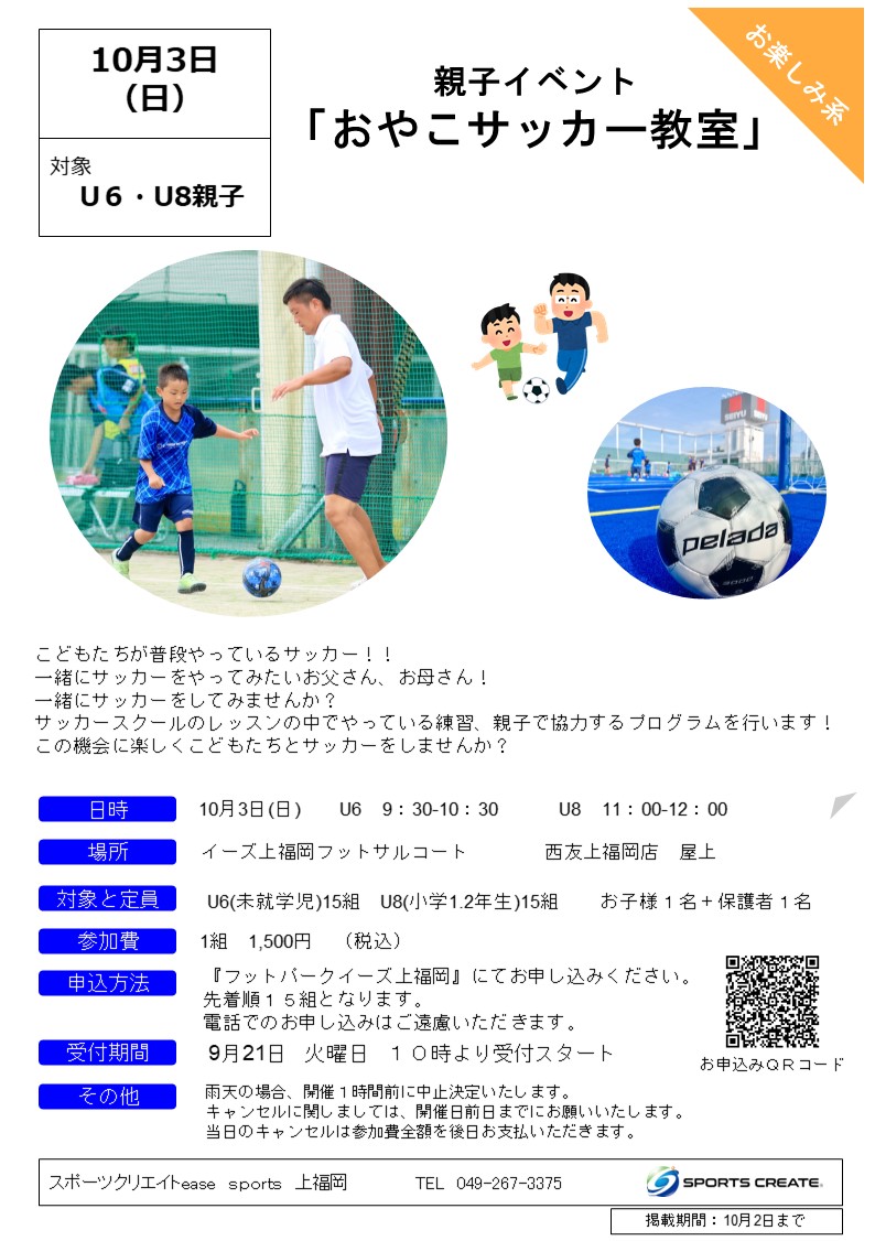 イベントのお知らせ【おやこサッカー教室】10/3(日)