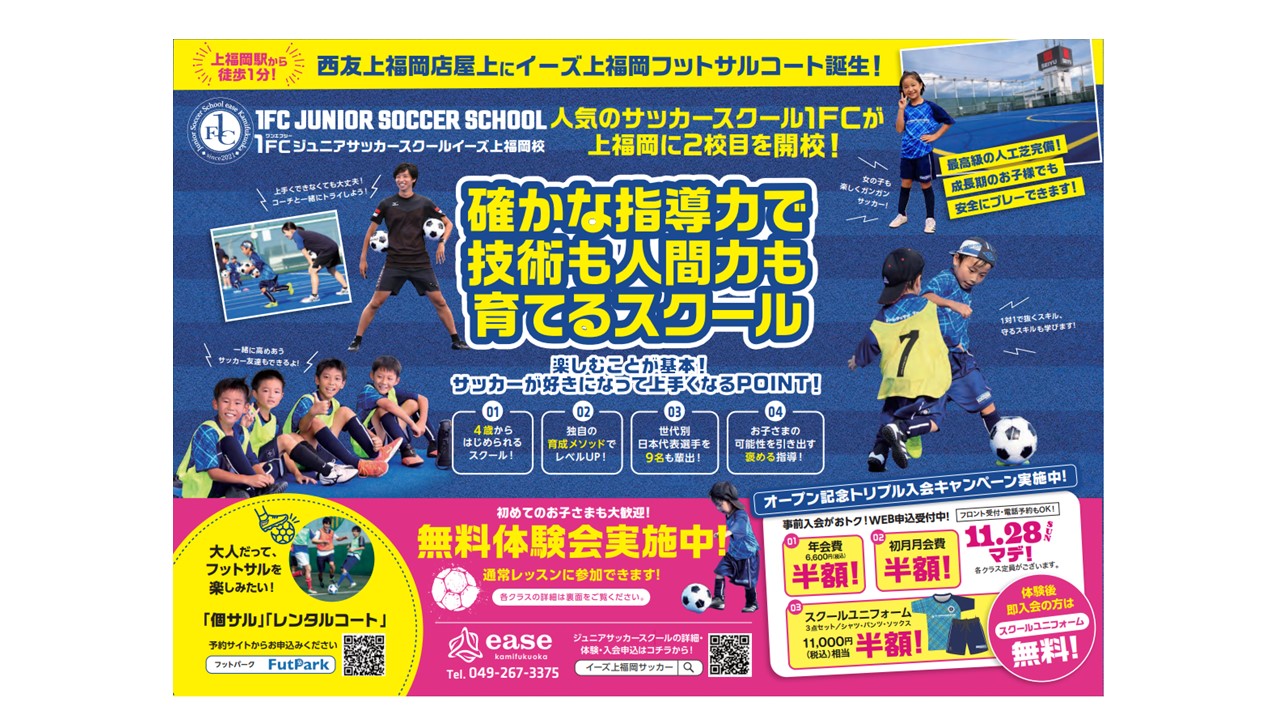 1FCジュニアサッカースクール上福岡校 ★オープン記念キャンペーン★ 1FCジュニア……