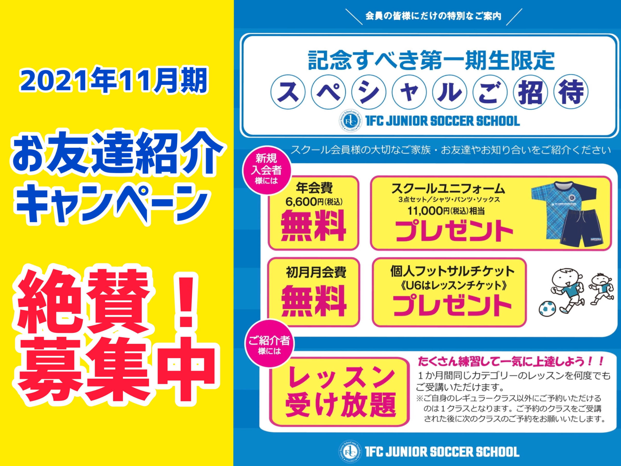 サッカースクール11月お友達紹介キャンペーン! 1FCジュニアサッカー……