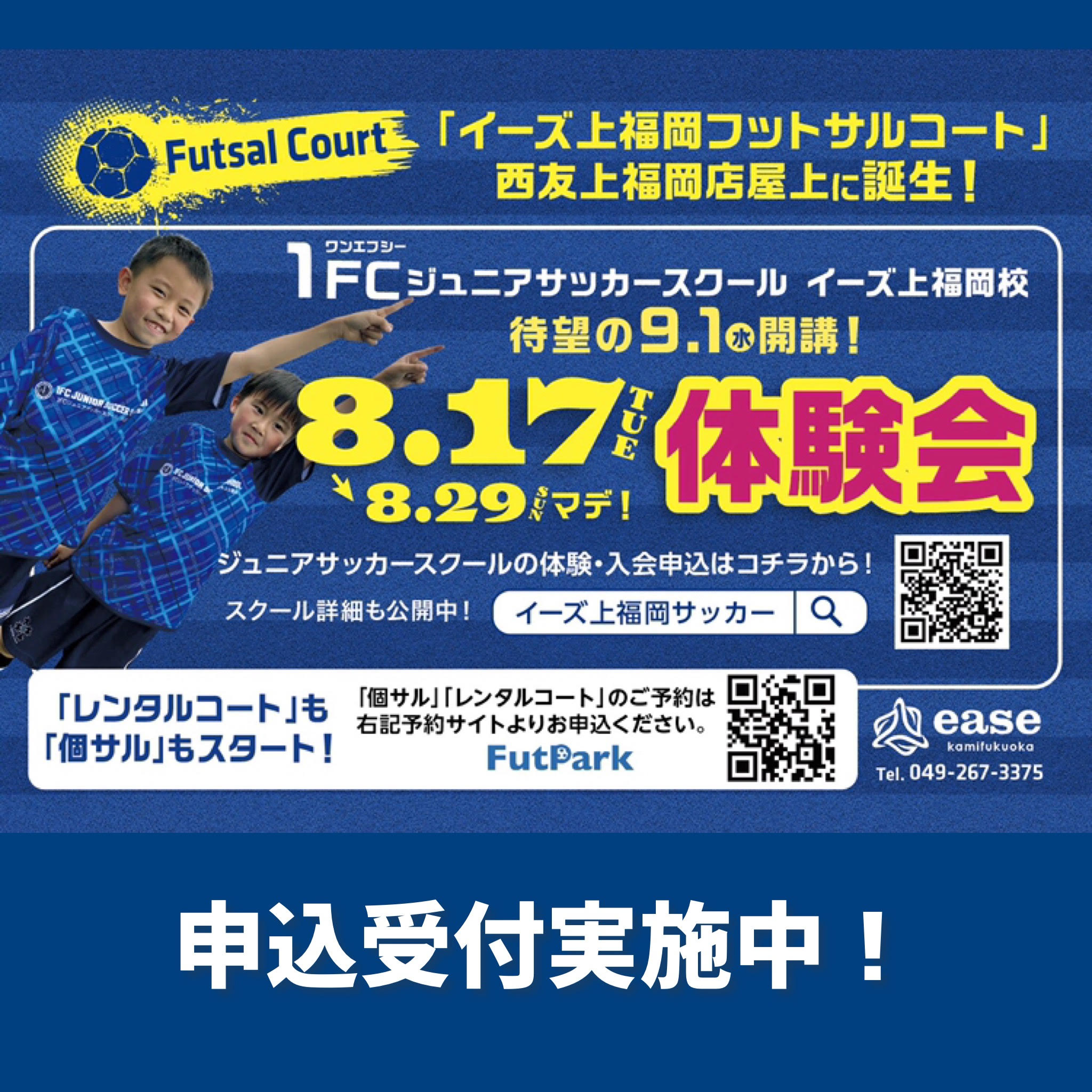 1FCジュニアサッカースクール【イーズ上福岡校】が本日9月1日開校しました! 西友……