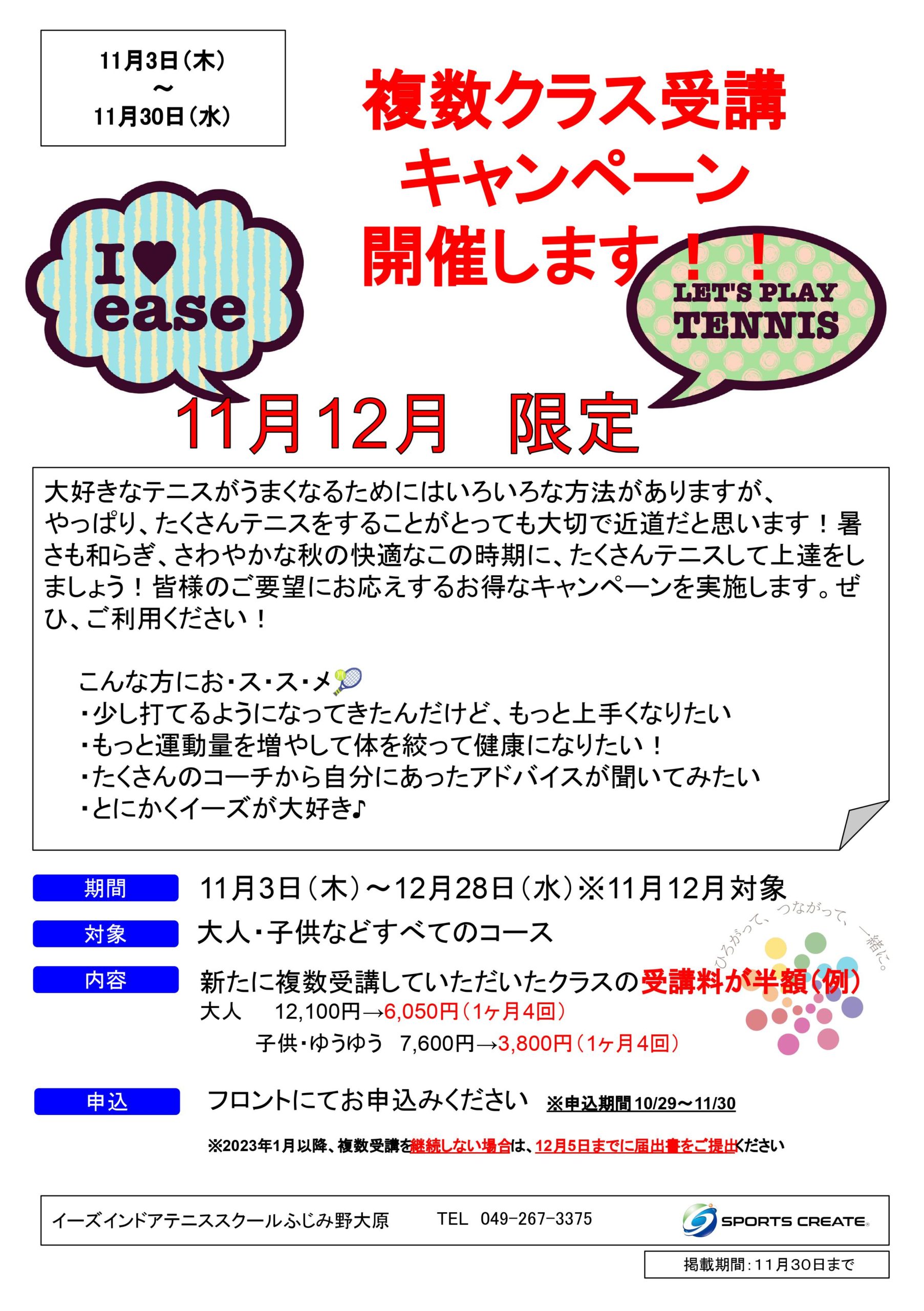 秋の新規入会キャンペーン!!(10/1~12/11)