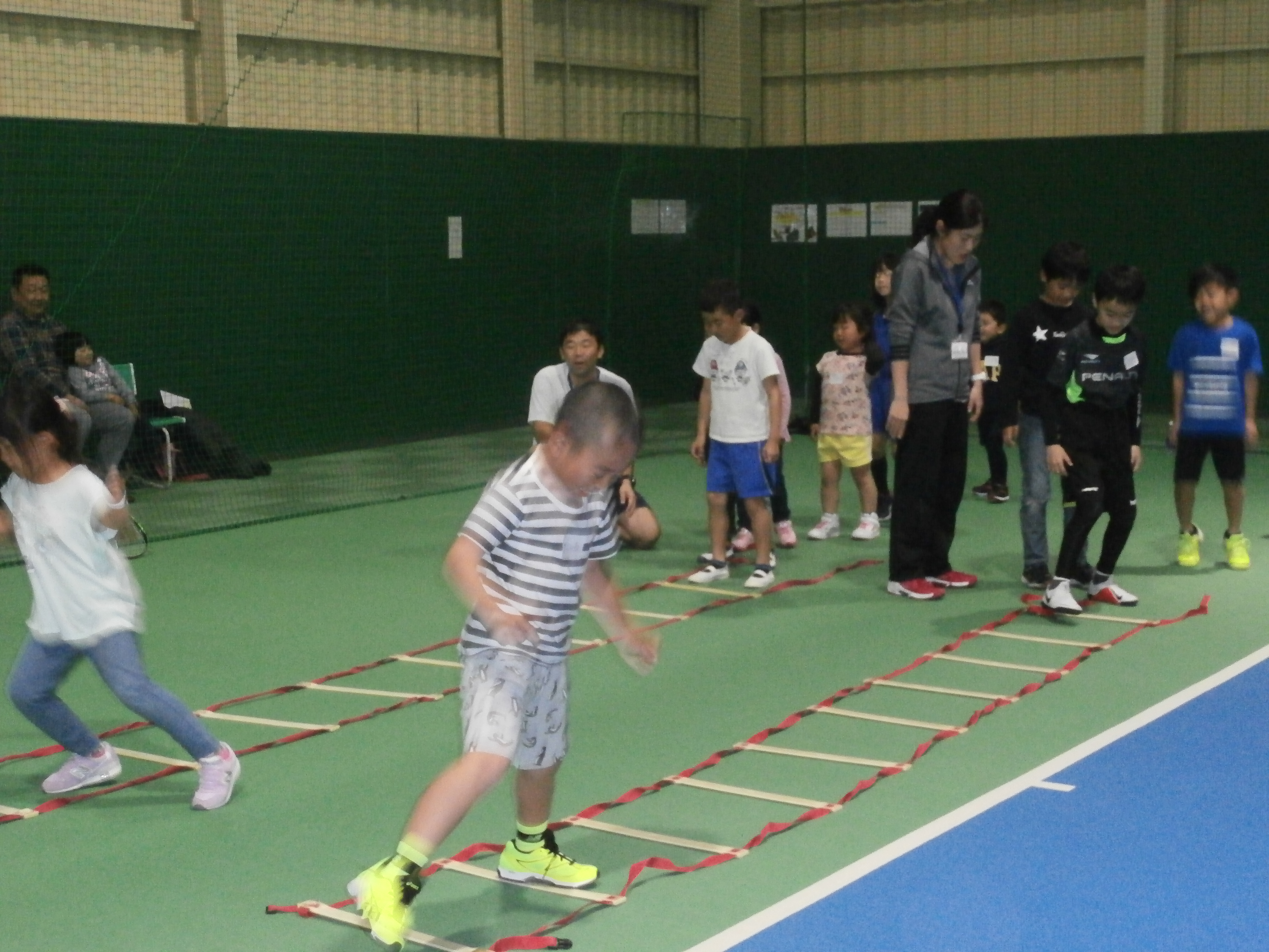 コーチの指示に従って、初めて触るであろうスポンジのボールにみんなワクワクしながらラケットを使って打ったり、転がしたりしながら触れていきます!