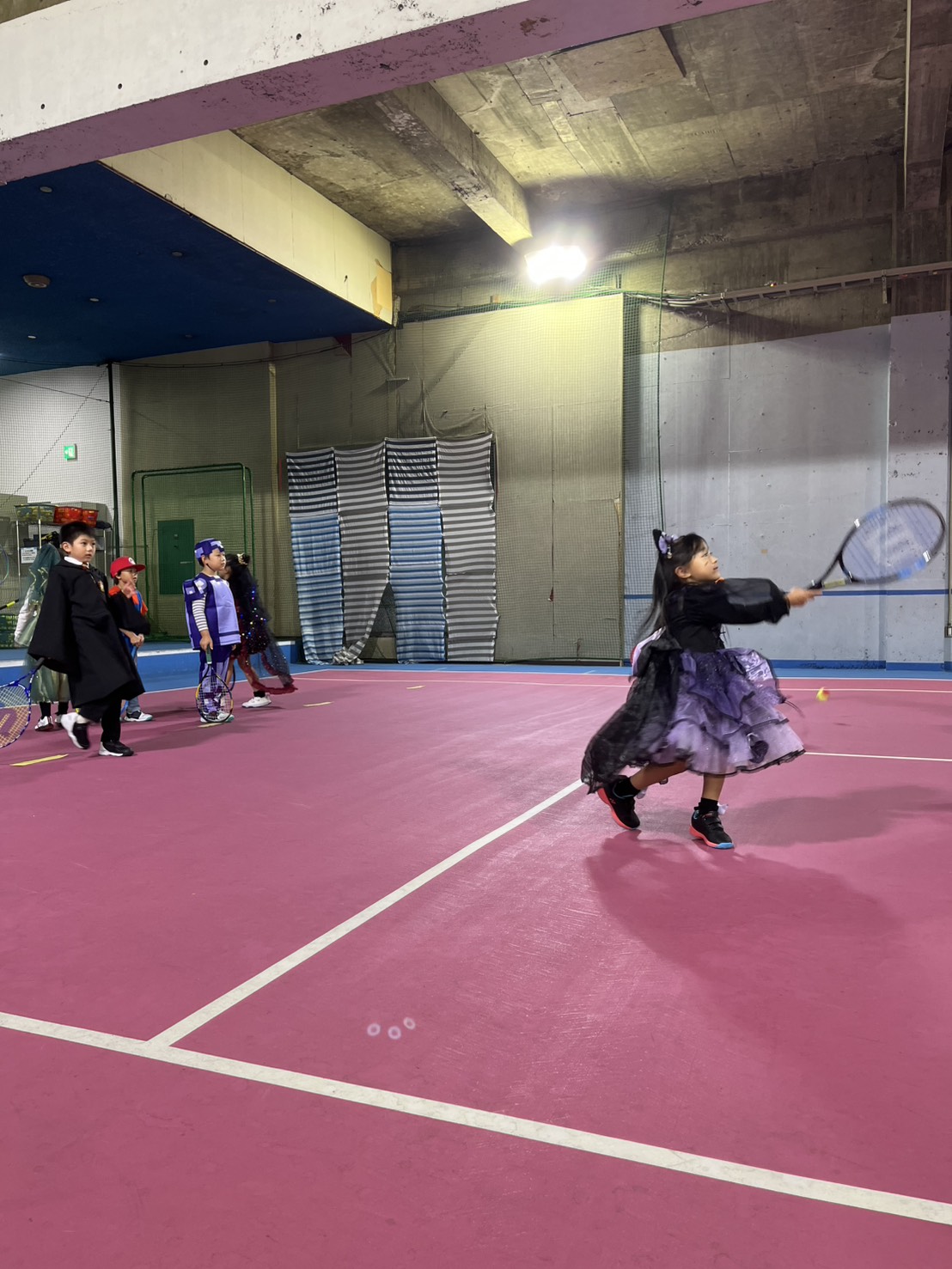 10月26日はハロウィーンイベントで、ジュニアのみんなに仮装してもらってテニスを楽しんでもらいました🎵 まずは、仮装のお披露目会!手作りだったり、お化粧だったりと普段とは違った格好でみんなうきうきしていました( *´艸`) コーチたちも仮装をして、「こわい~」と言ってもらえてご満悦🌟 また来年もみんなで仮装を楽しむぞ~👻