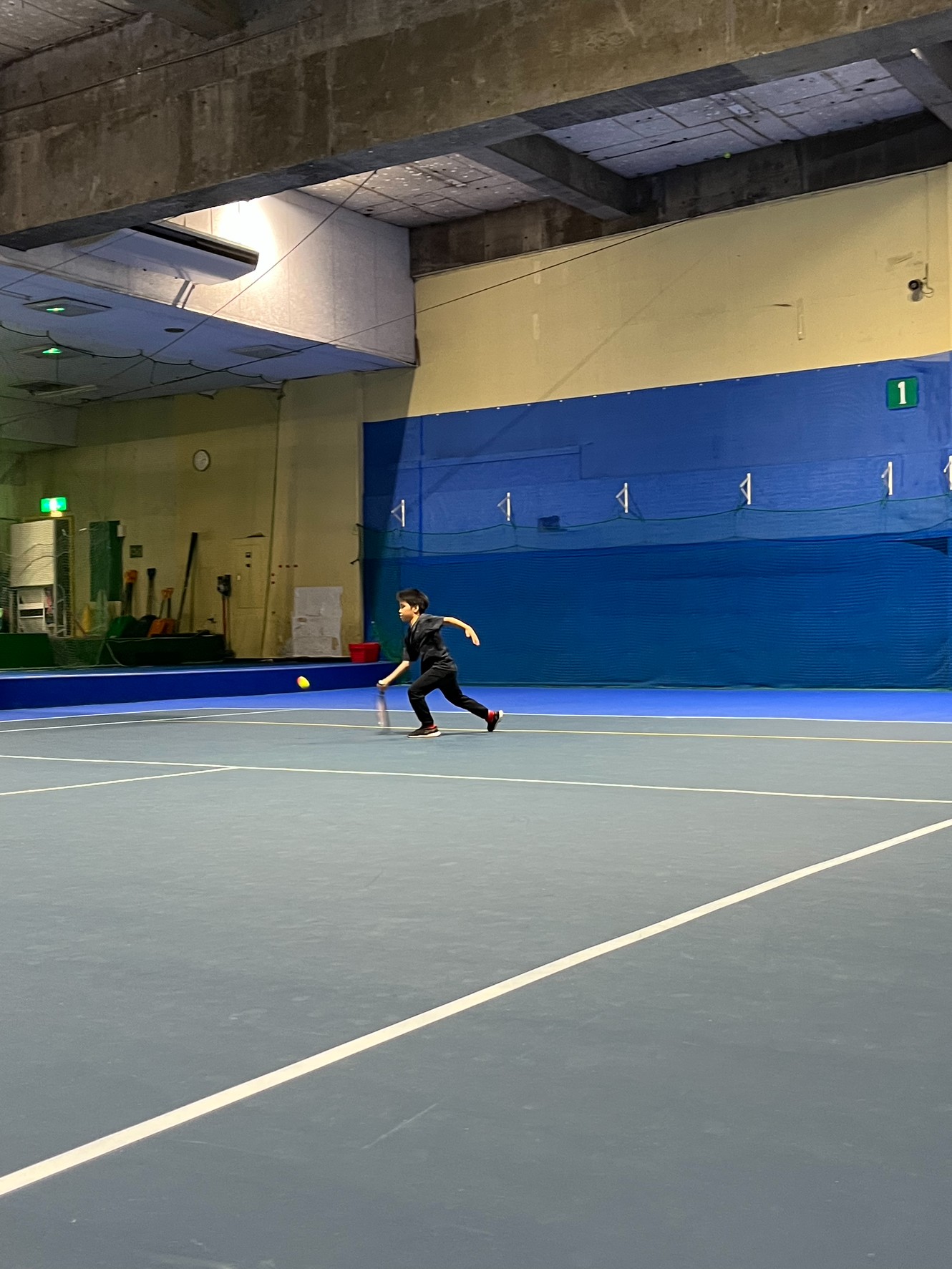 まだ体は小さいながらも大きいお兄さんたちの強いボールもしっかり返して、疲れ知らずにコートを走り回ってきちんと返す!