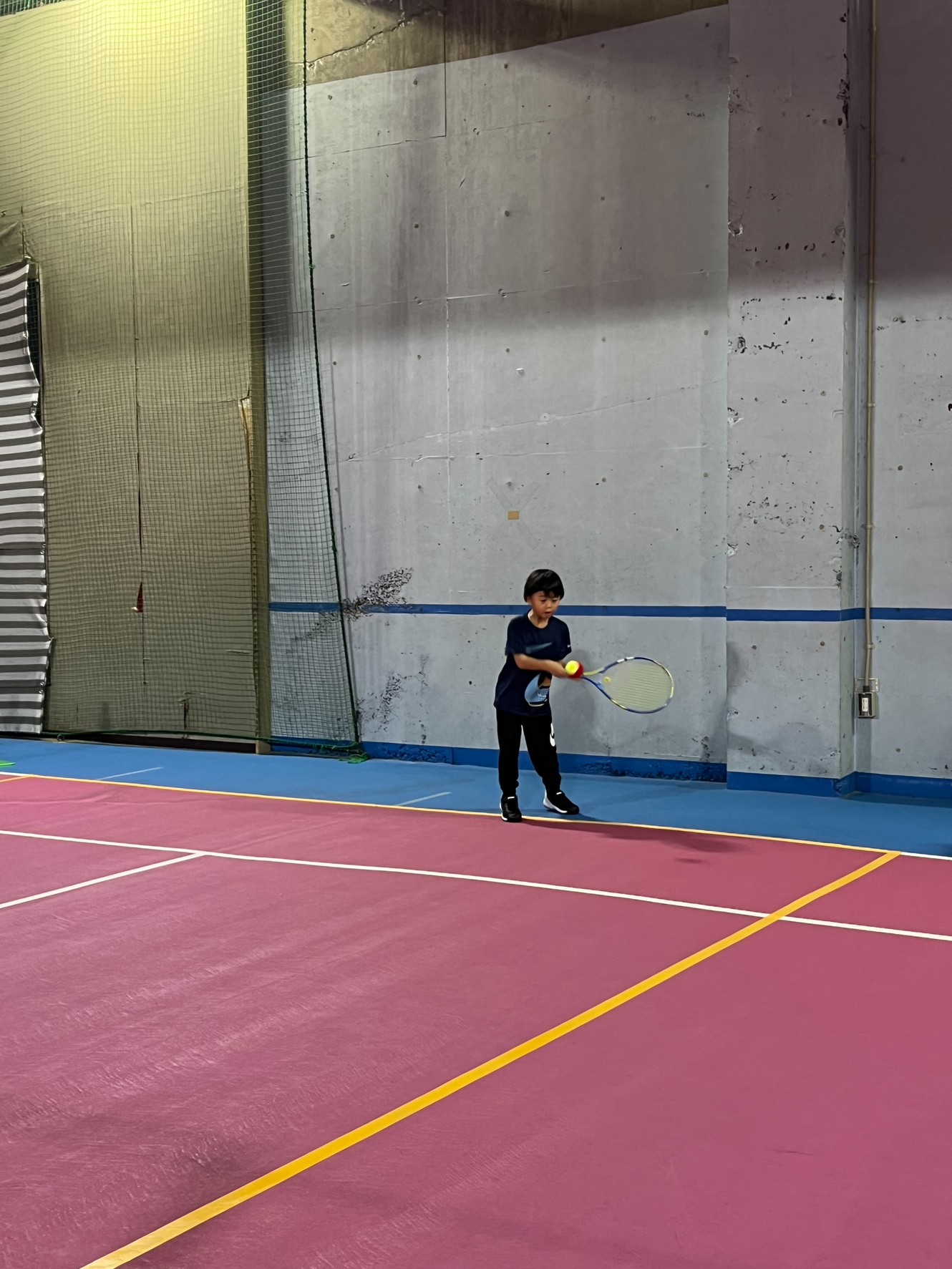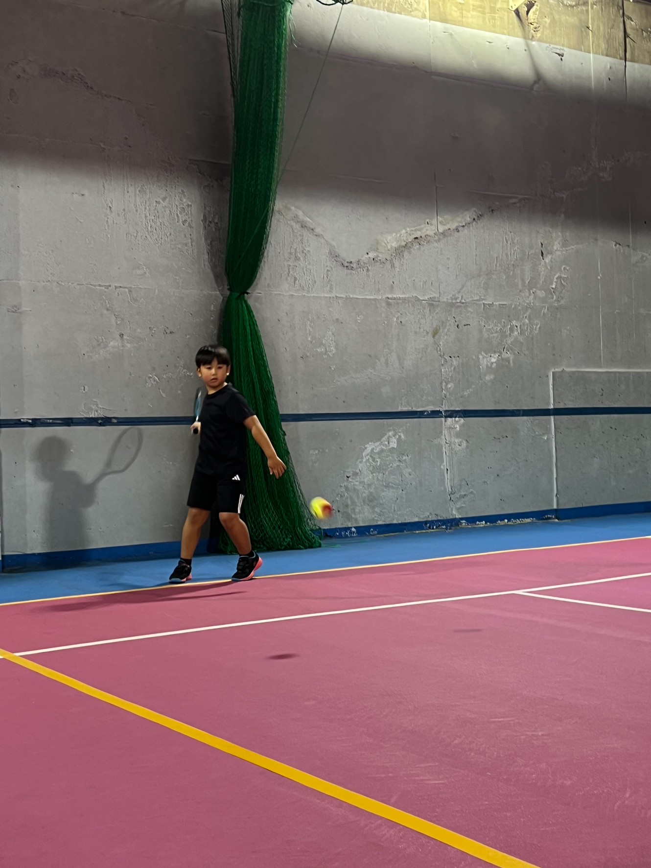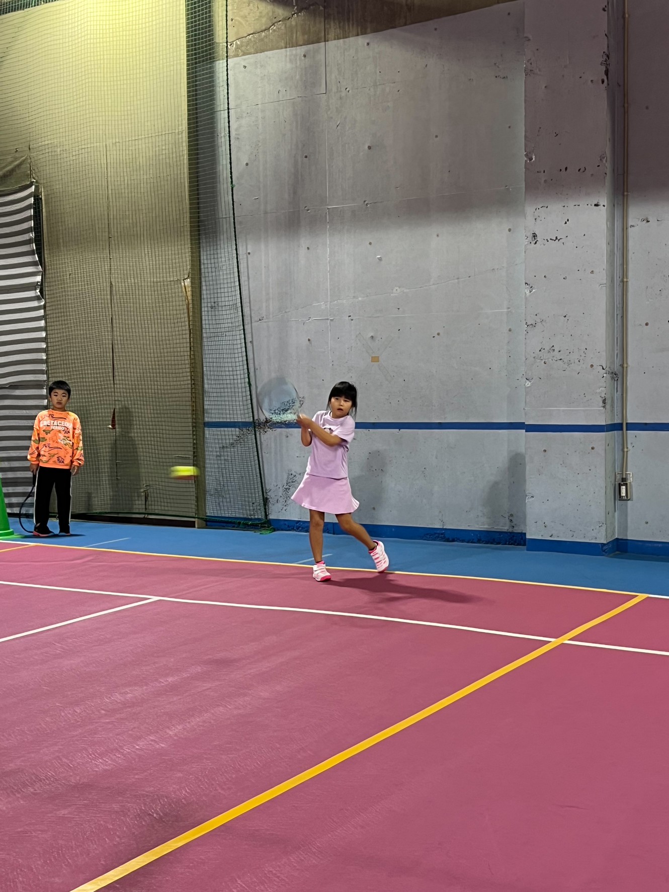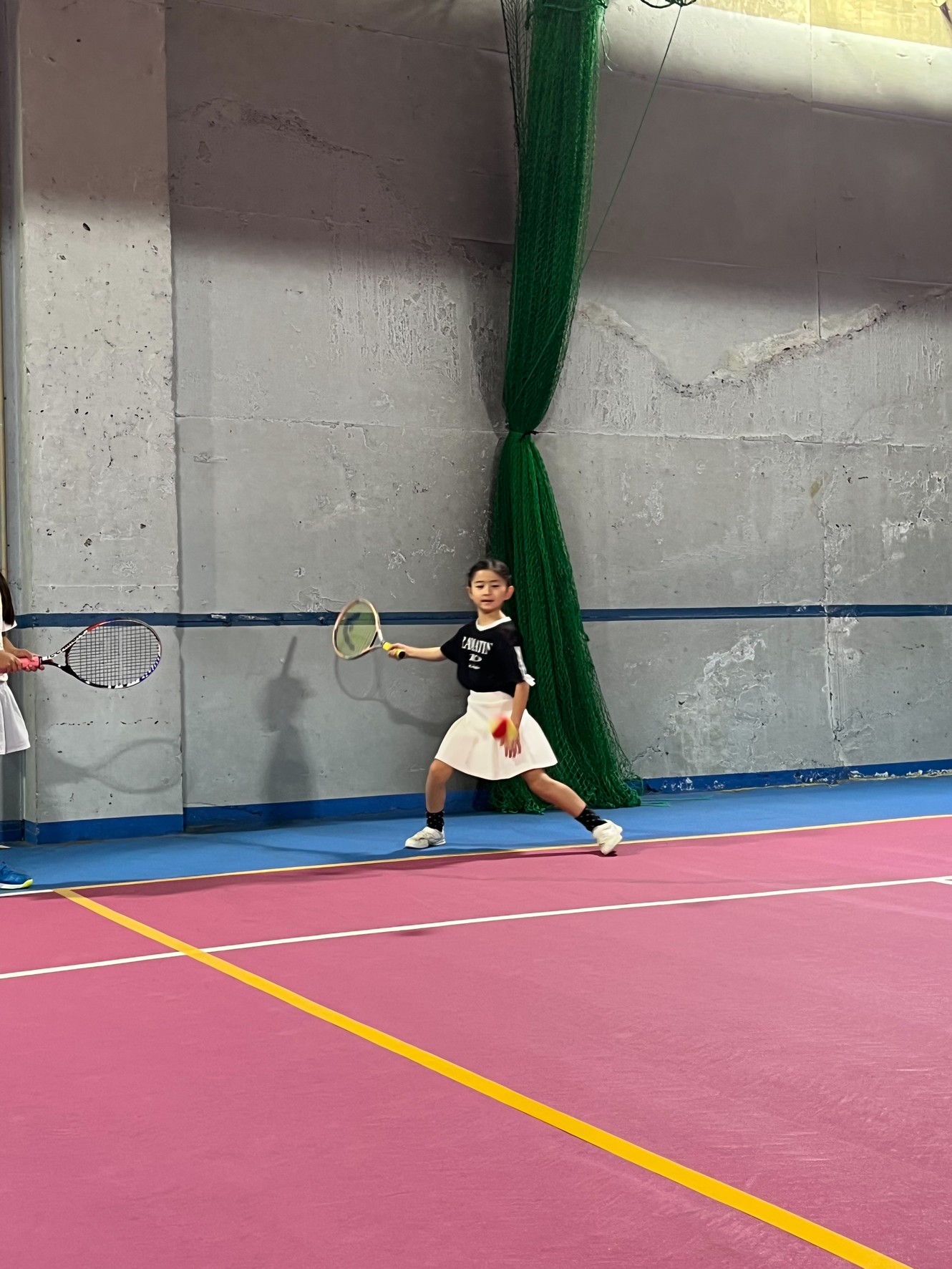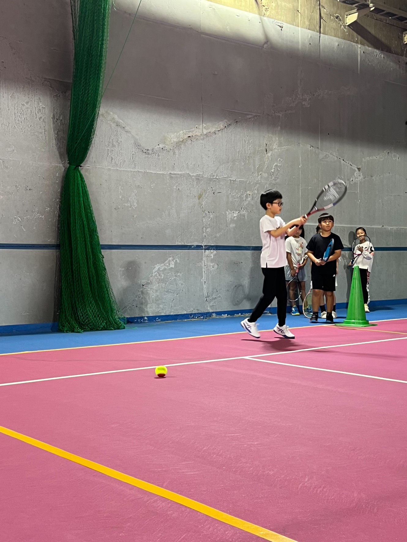 初めての試合のジュニア生は緊張したと思いますが、試合は、「よろしくお願いします。」のあいさつから始まり終わりは「ありがとうございました。」そして自分達でボールを拾い、セルフジャッジで「アウト」のコールなど勝ち負けだけではなくこれからのテニスの試合を見据えていろいろと覚えてほしいです。
