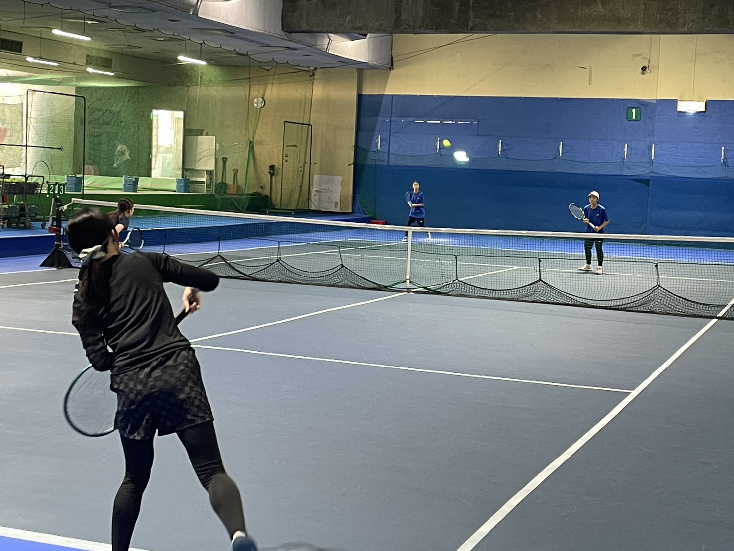 11月24日(月)に女子ダブルス大会を開催しました。 今回は4ペアでの開催となりました。 6ゲーム先取ノーアドバンテージで総当たり戦で行いました。 サーブがいい方が多くサービスゲームをキープできる場面が多く見られました。 また雁行陣の戦いでストローク戦になることが多かったです。