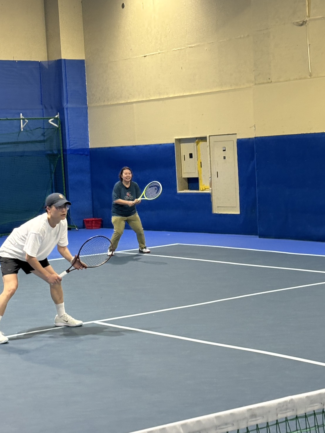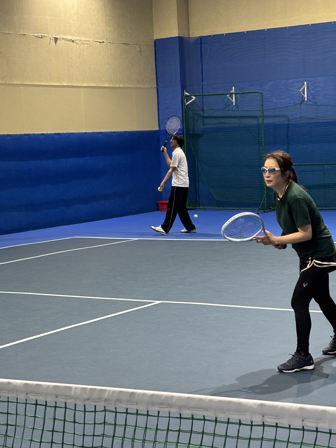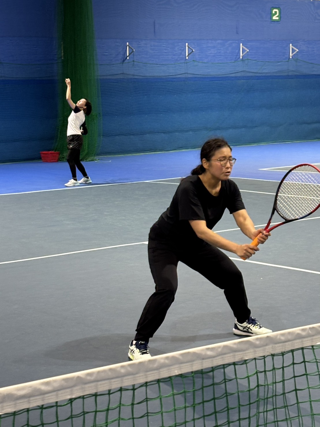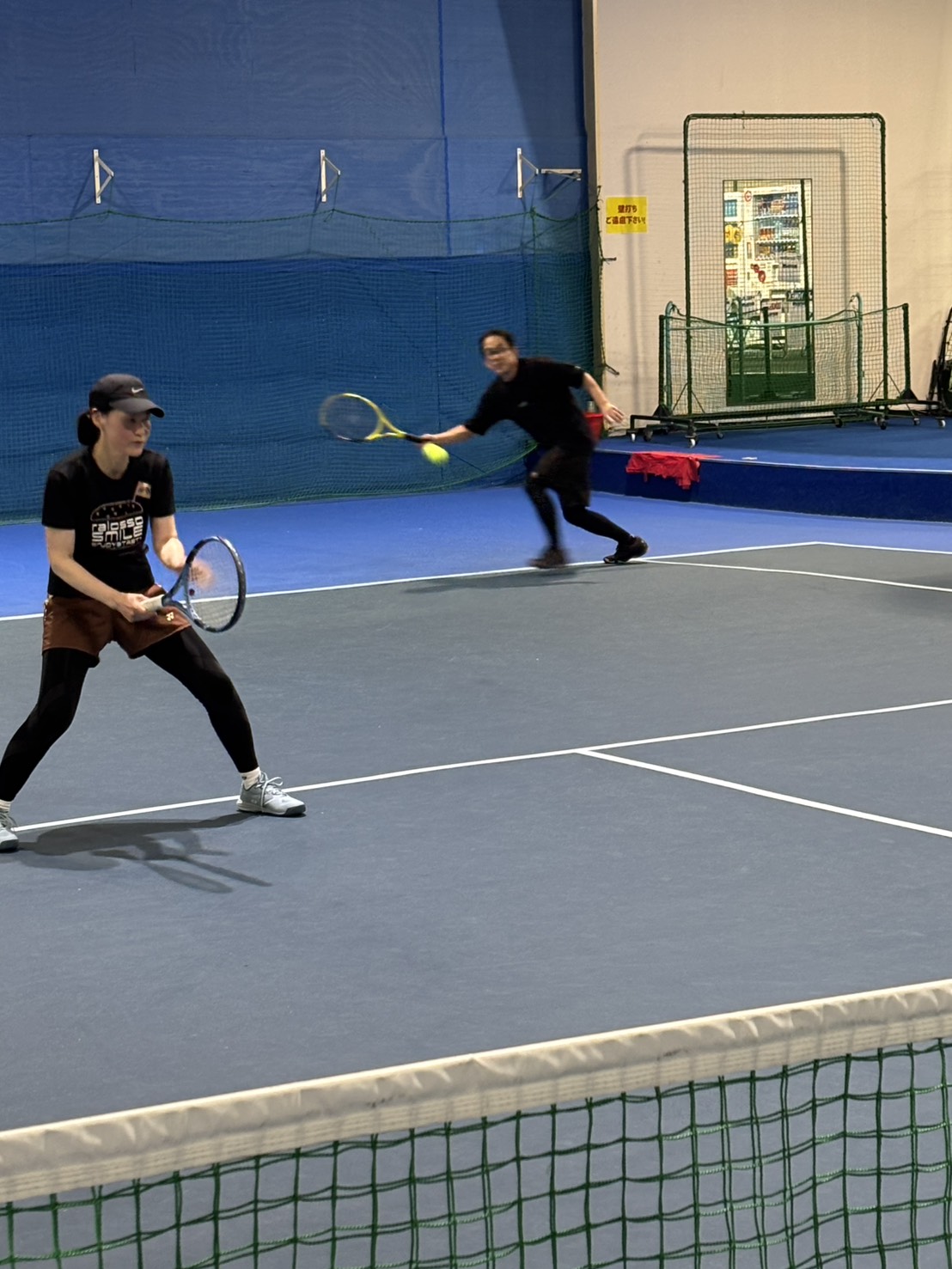 速いボールを打つには、ただ振るだけではなく、足を動かしてボールとの距離、タイミングを合わせて振ることを意識してもらい多少の強引な振り方は今回はそんなに気にせずまず振ってその中で、皆さん自分なりに修正等してもらいました。そして速いボールを打つと言う事は、そのボールを受けて返球しなければいけないので、振り遅れないように意識してもらいました。約1時間30分、球出しからストロークラリー(ストレート、クロス)、ボレーストロークと振りまくって、打ちまくっての部活的な感じで練習をしました。