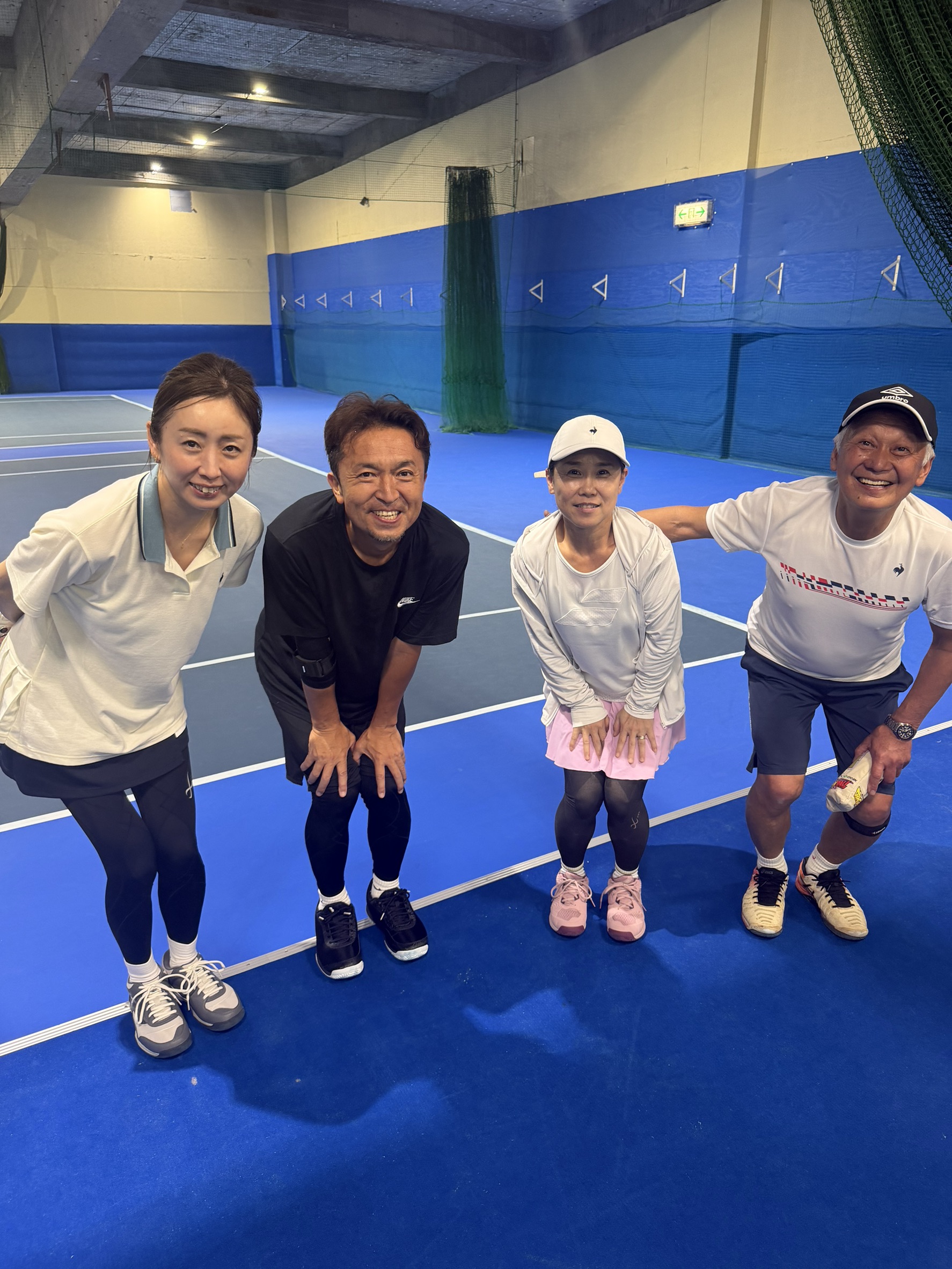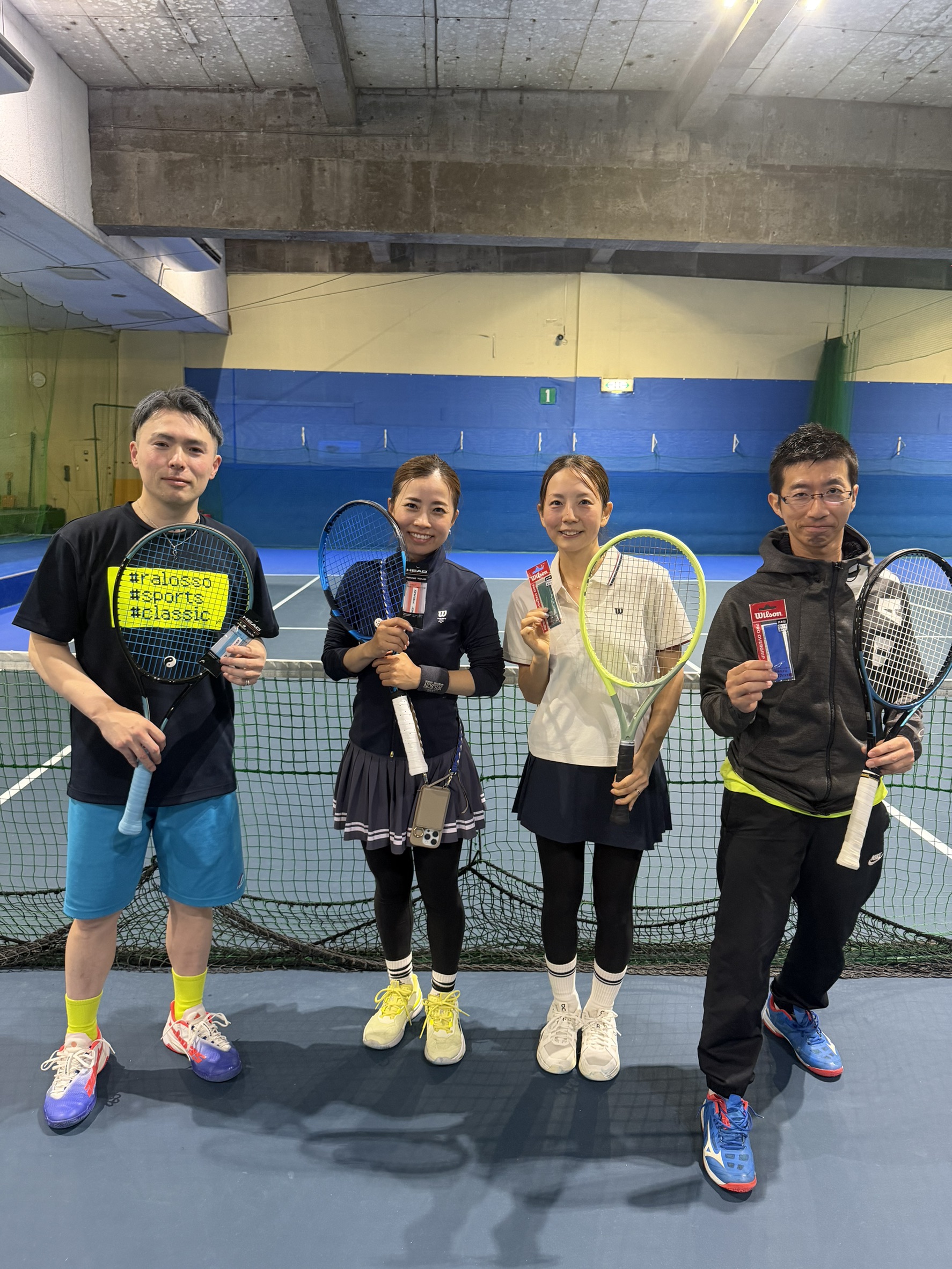 4人でのエントリーでミックスダブルスは重複しての出場で体力的にも相当しんどかったと思いますが、手堅いプレーと時折見せる攻撃的なショットがしっかり決まり、優勝です!女性陣が優勝後とっても喜んでいたのが印象的でした🎵おめでとうございます!