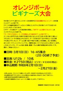 3月1日(日)オレンジボールビギナーズ大会・レッドボールビギナーズ大会開催のお知らせ