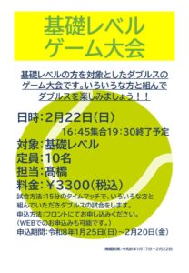 2月22日(日)基礎レベルゲーム大会開催のお知らせ