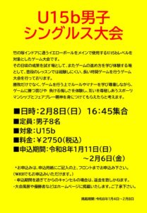 2月8日(日)U15b男子シングルス大会開催のお知らせ