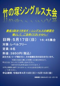 5月17日(日)竹の塚シングルス大会開催のお知らせ