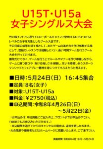 5月24日(日)U15T・U15a女子シングルス大会開催のお知らせ