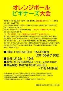 11月16日(日)にオレンジボールビギナーズ大会・レッドボールビギナーズ大会を開催します。