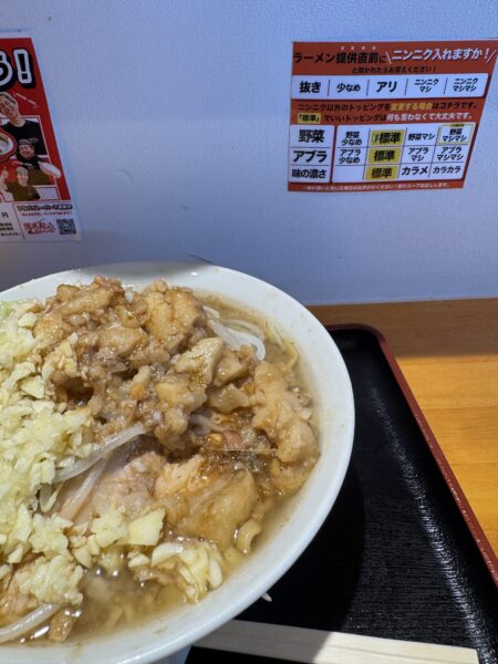 確か麺300gでニンニクマシマシ、アブラマシマシだったと思います。今見ても食欲がそそられますね〜