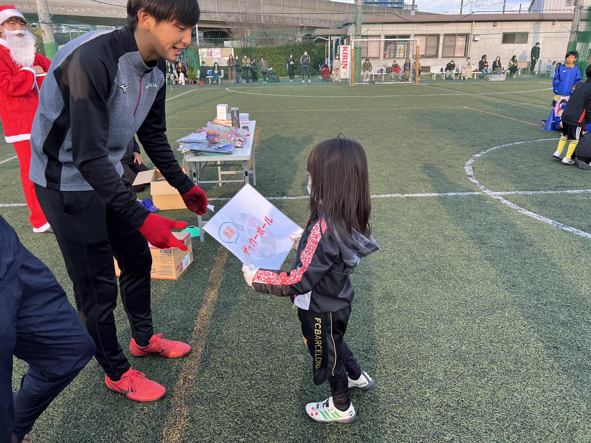 サンタさんからのプレゼントやコーチ達からのプレゼントが当たるように、祈りながら見つめる子供たちが印象的でした!!