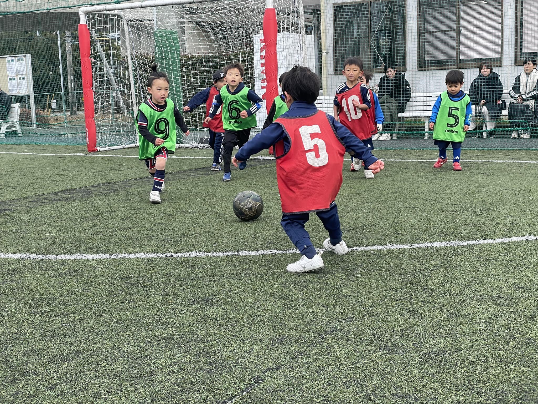 1/28(日)9:30~10:30、「年少・年中対象ゲームイベント」を開催致しました! 12名の子供達にご参加頂きました!ありがとうございます。 簡単なウォーミングアップを行ってから、3チームに分け、試合を中心に行っていきました。 参加した子供達が目の前のボールを一生懸命追いかけ、ゴールを目指してプレーしていました! 最後まで楽しそうにプレーしていた子供達がとても印象的でした! 次回は3月頃に開催予定となります。 皆様のご参加、心よりお待ちしております。