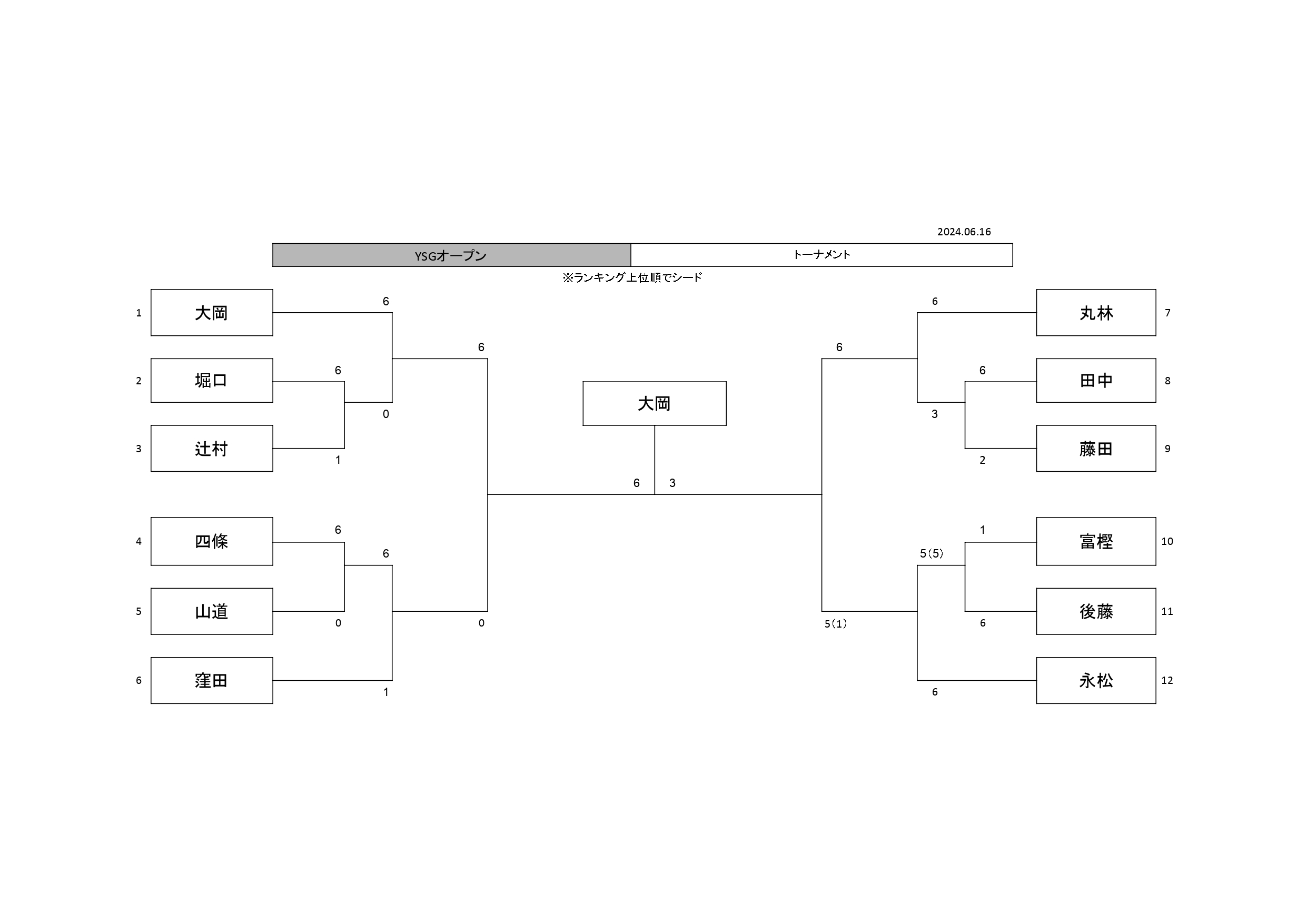• 6/16(日)に第6回:男子シングルス大会~YSGオープン~を開催しました!!