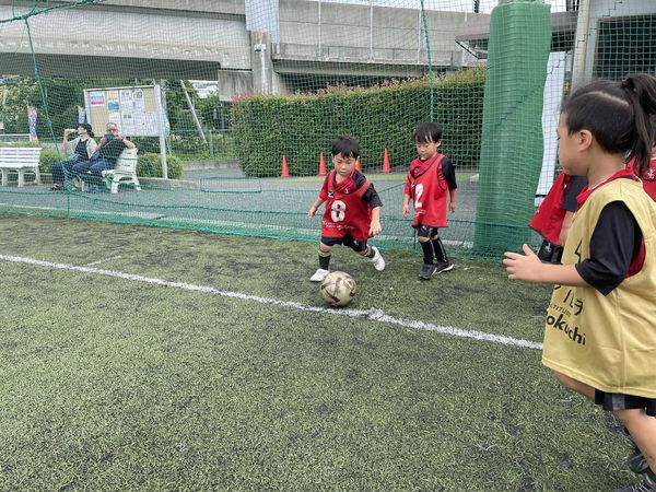 最初は遠慮がちだった子供達が少しずつ目の前のボールを一生懸命追いかけ、ゴールを目指してプレーしていました!