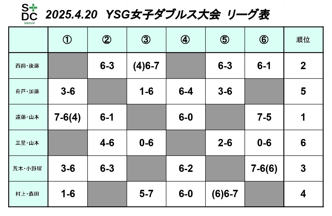 6組とも同じリーグですが、くじ引き順で対戦相手が決定し、4組との対戦結果で順位決定となります。