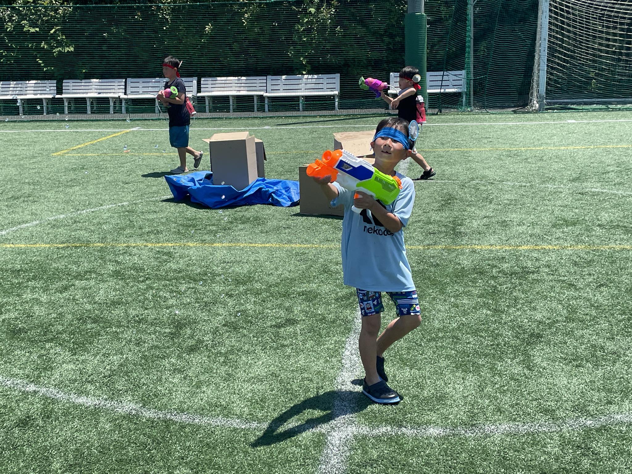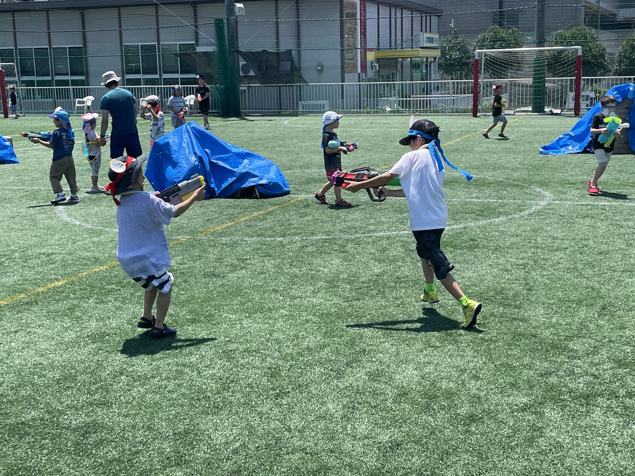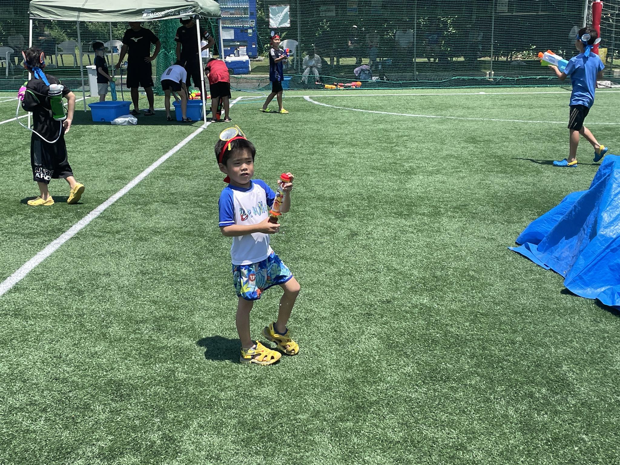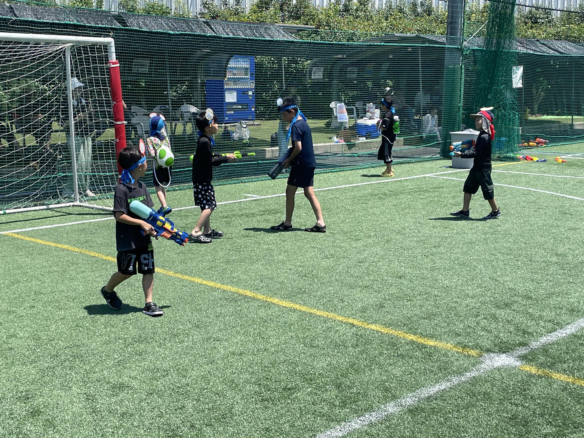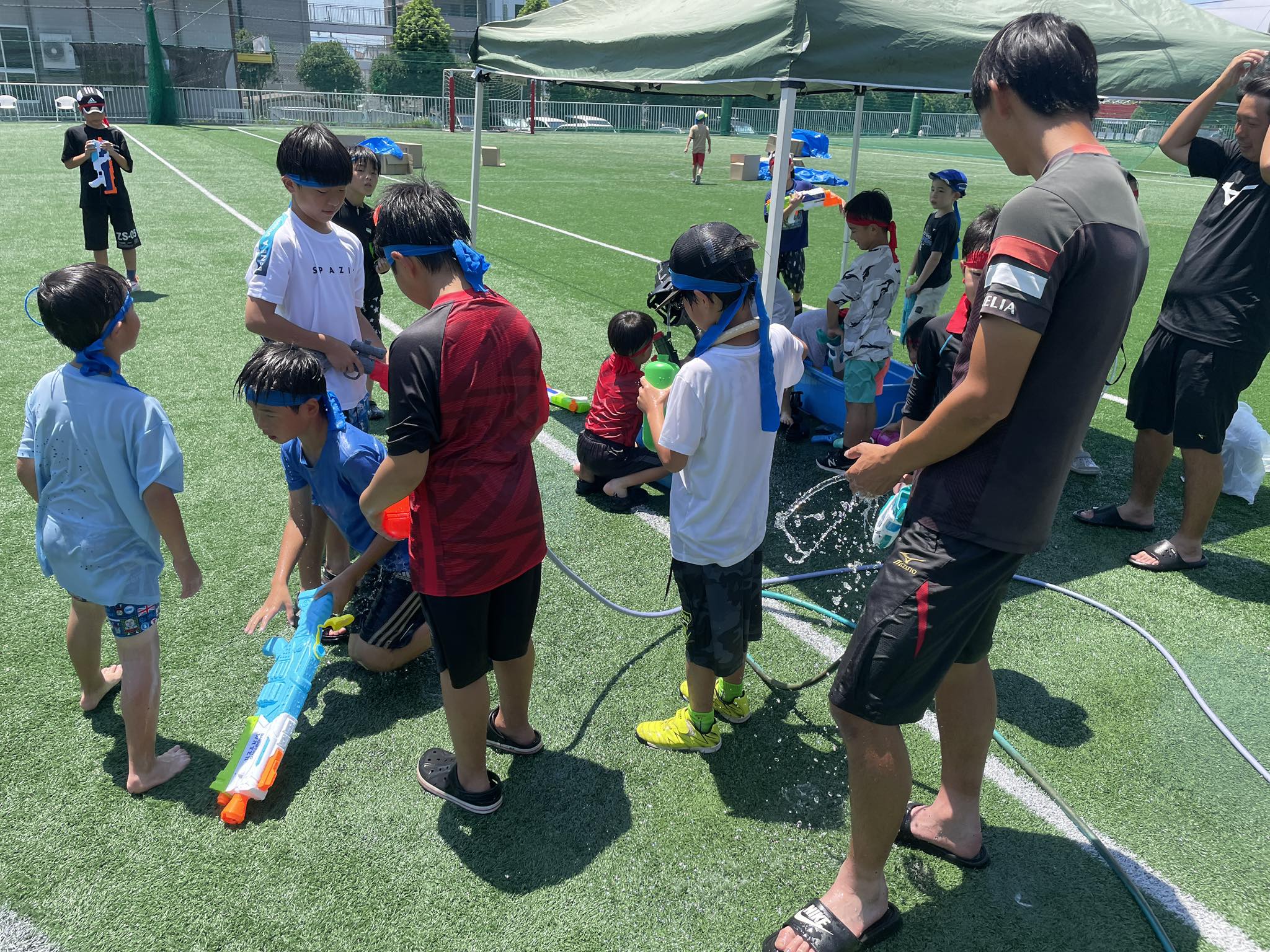 それぞれが持参した水鉄砲を使い、最後の方は全員が敵となり、コーチ達も混ざって対決しました!