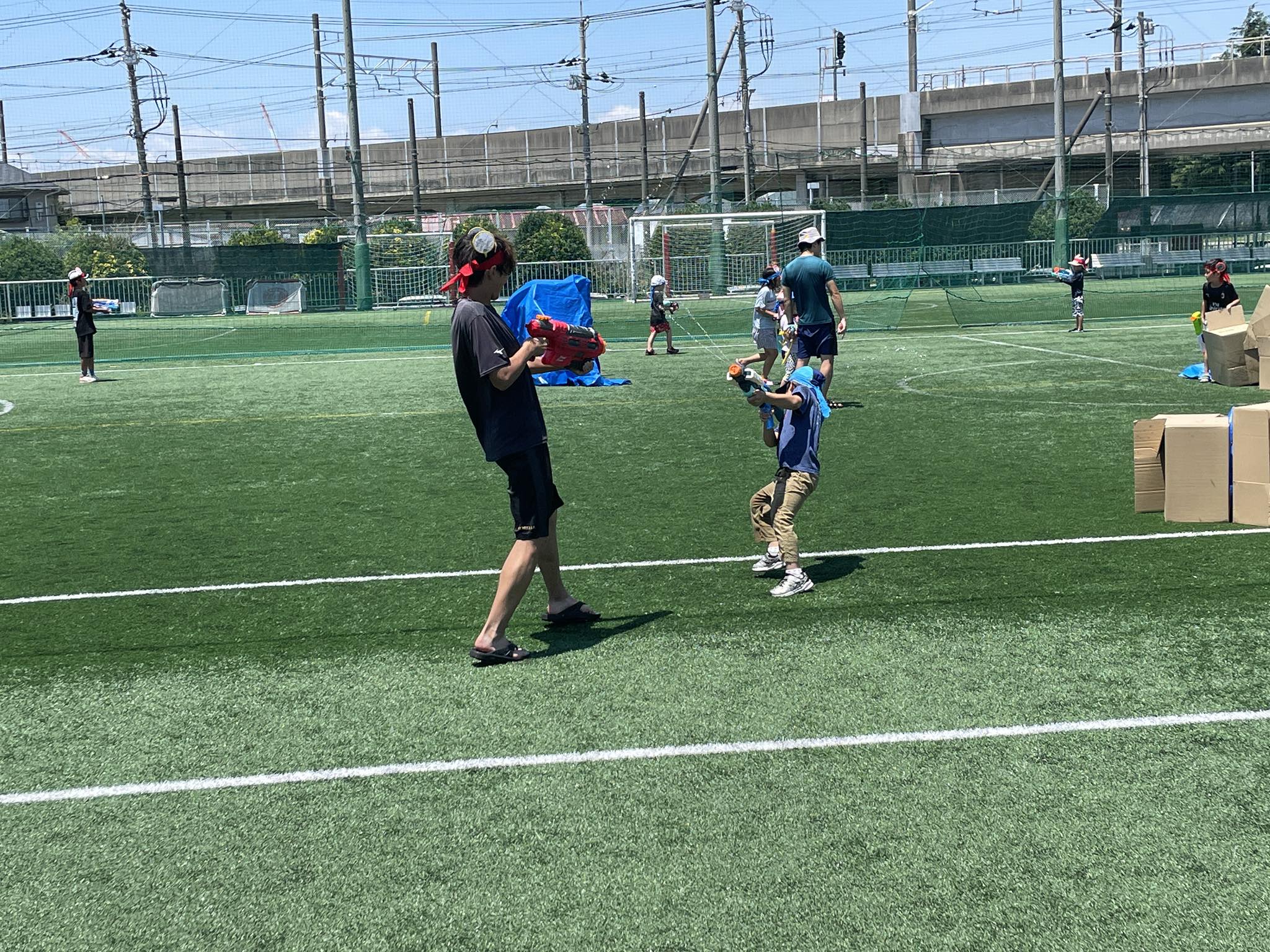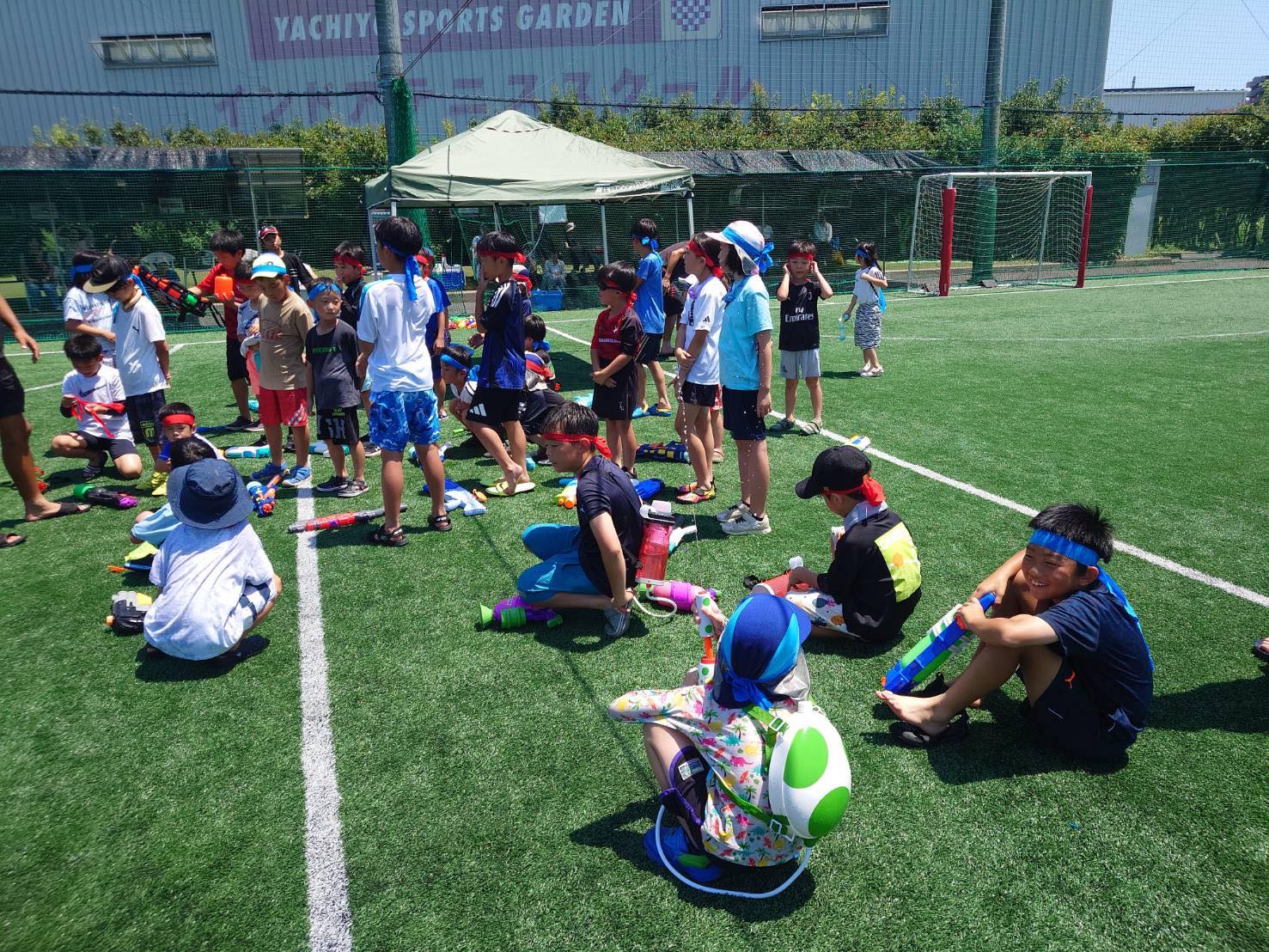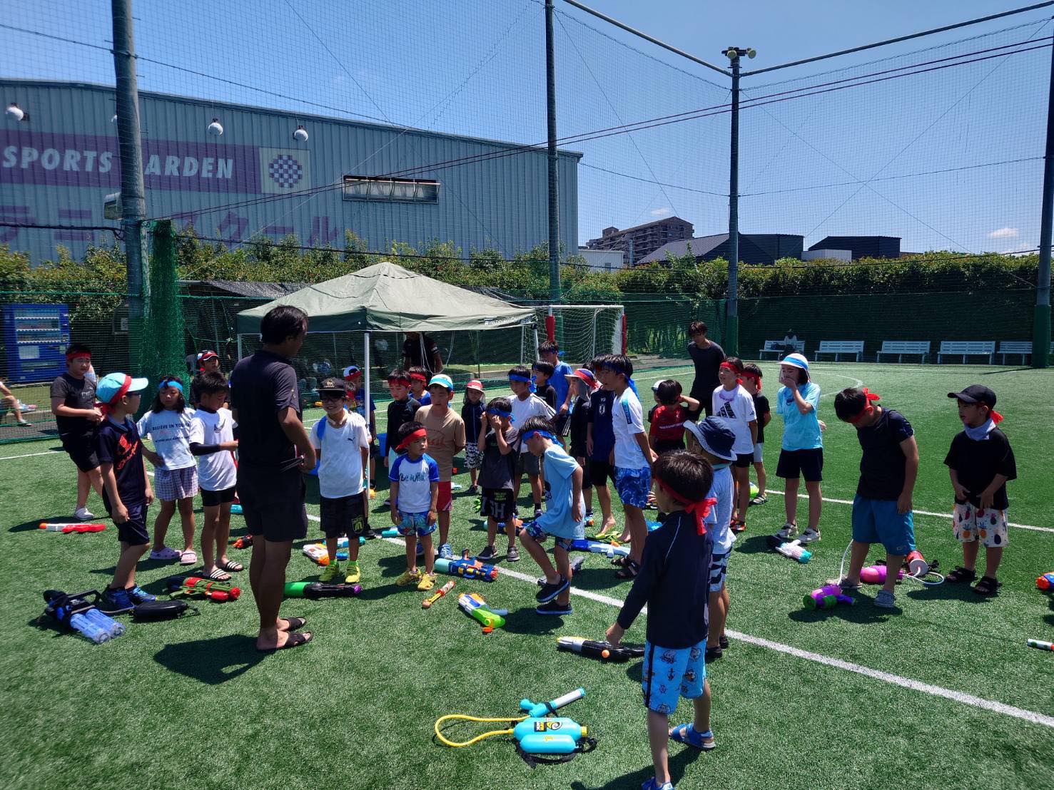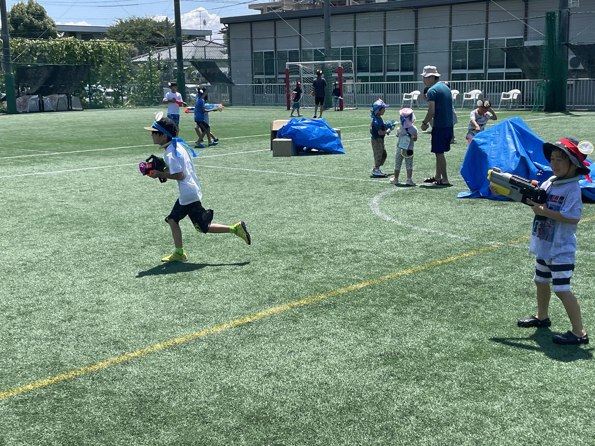 それぞれが持参した水鉄砲を使い、最後の方は全員が敵となり、コーチ達も混ざって対決しました!