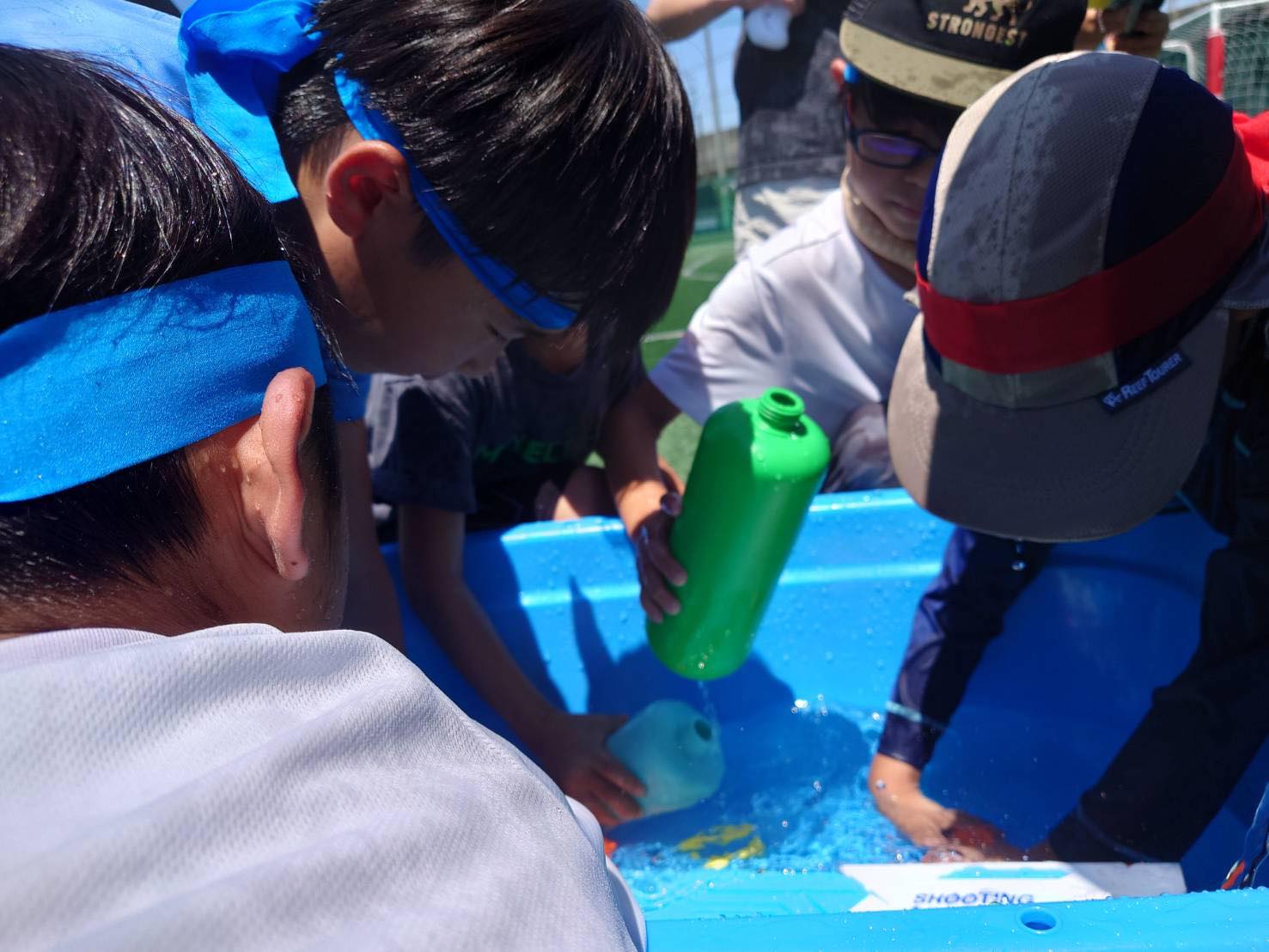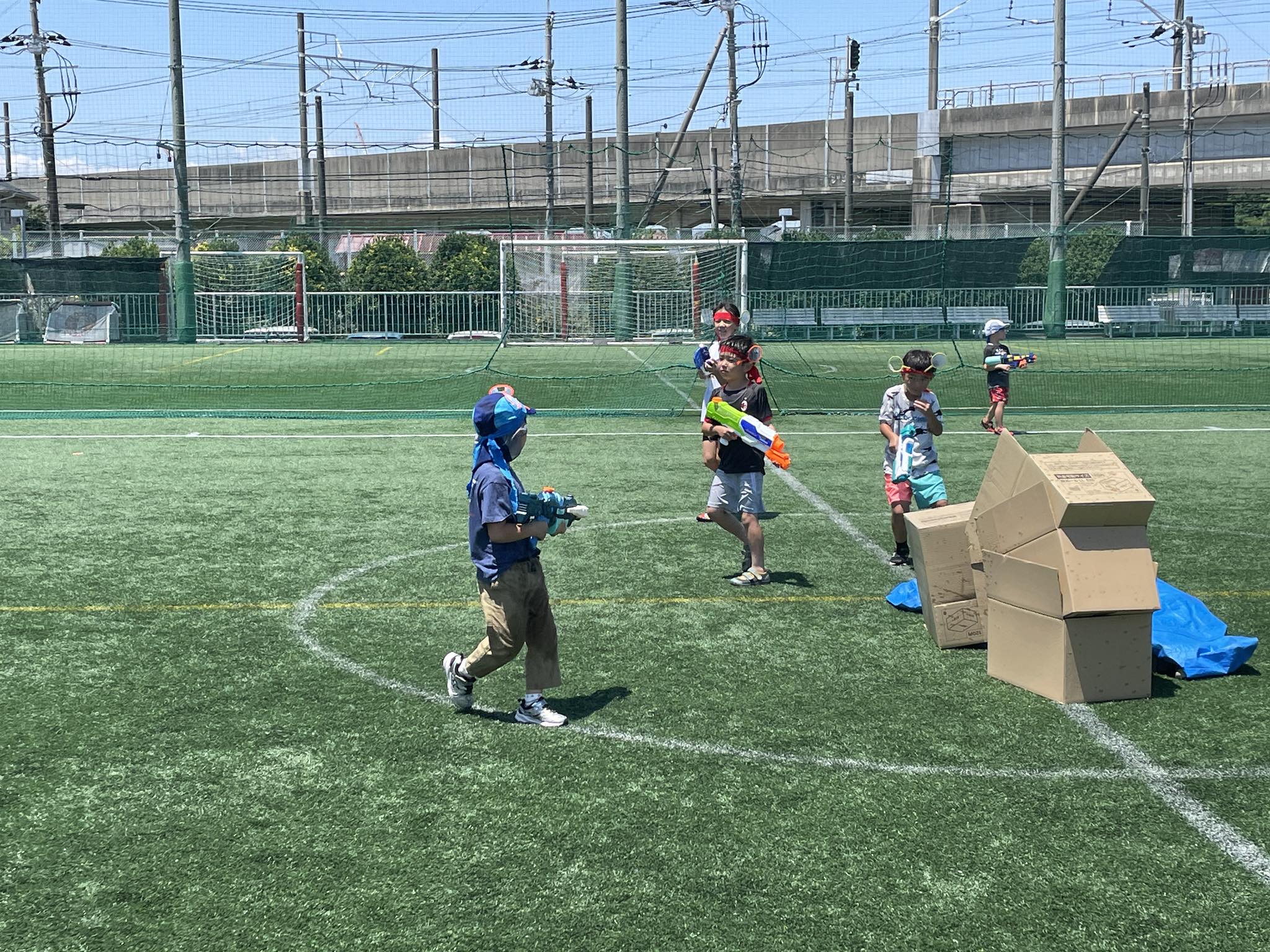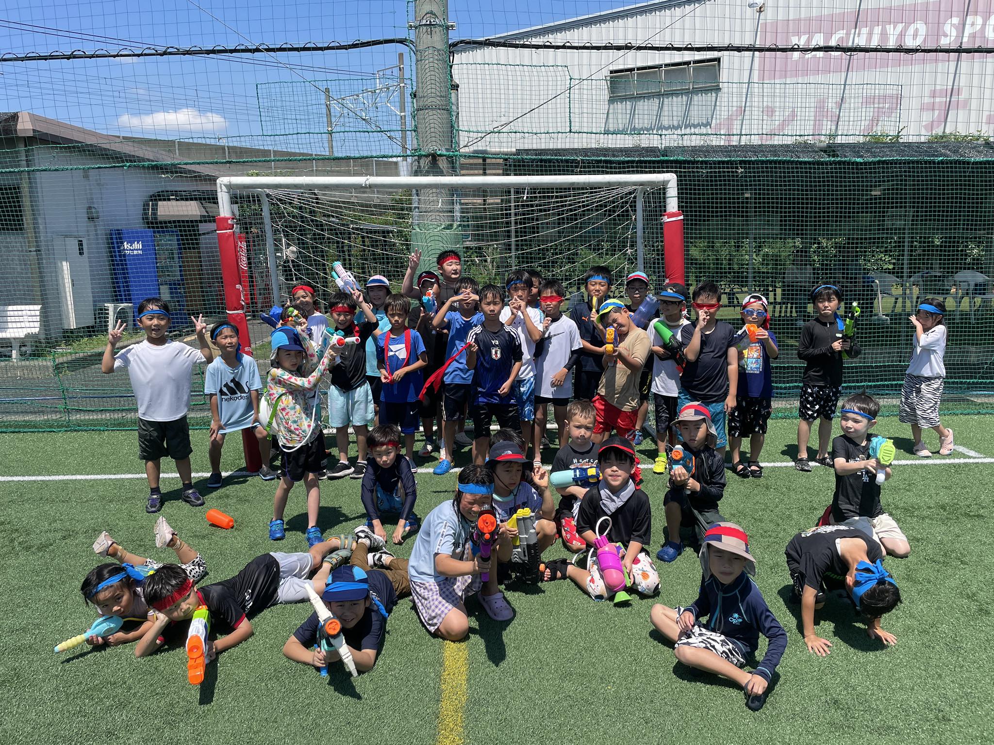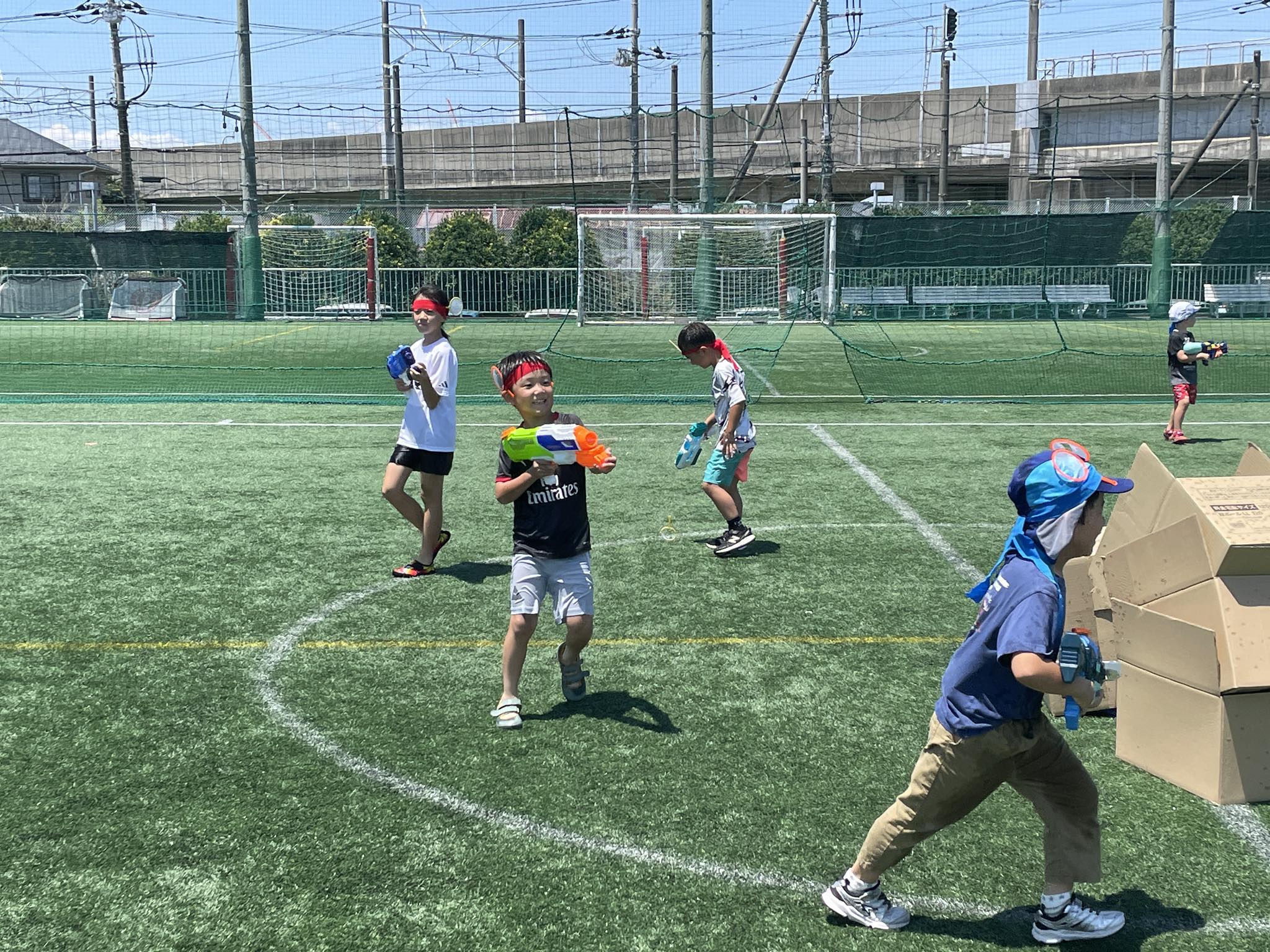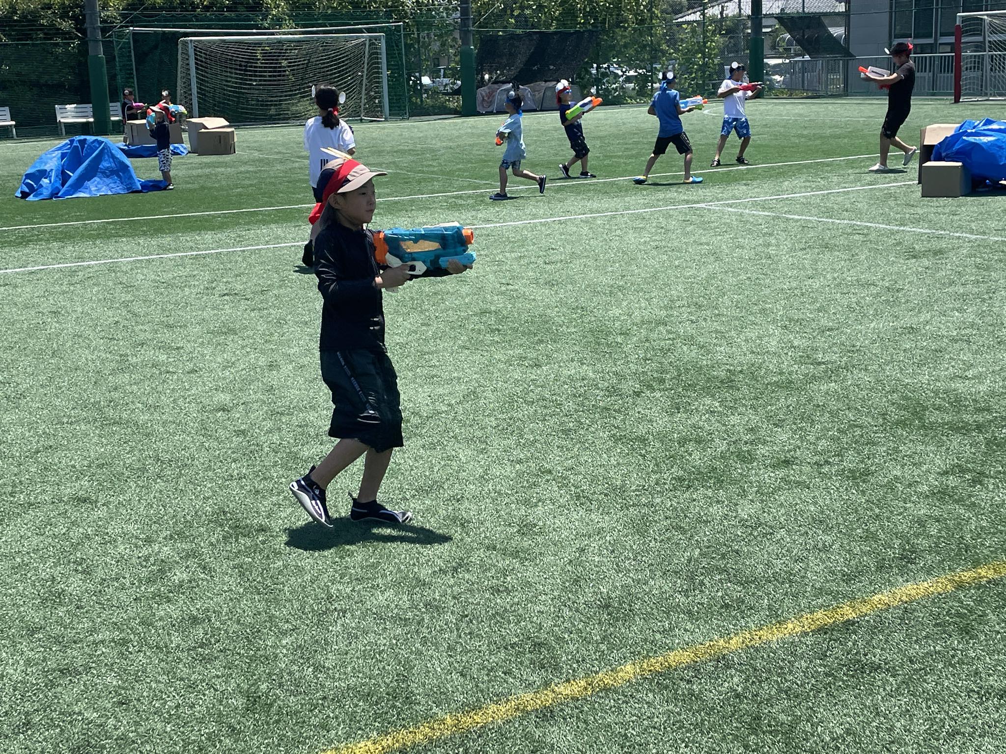 それぞれが持参した水鉄砲を使い、最後の方は全員が敵となり、コーチ達も混ざって対決しました!