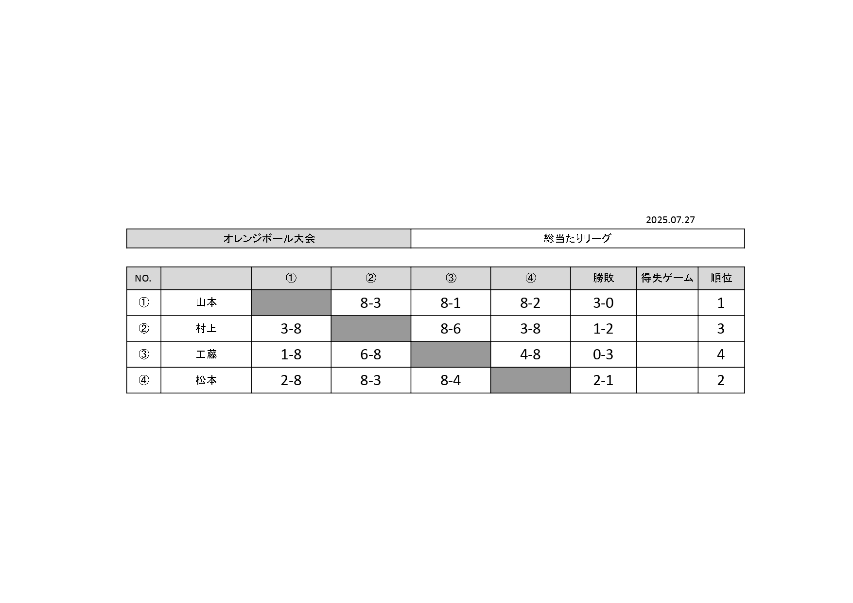 イエロー大会初出場でしたが、安定したラリーでゲームを取得し、見事優勝でした!