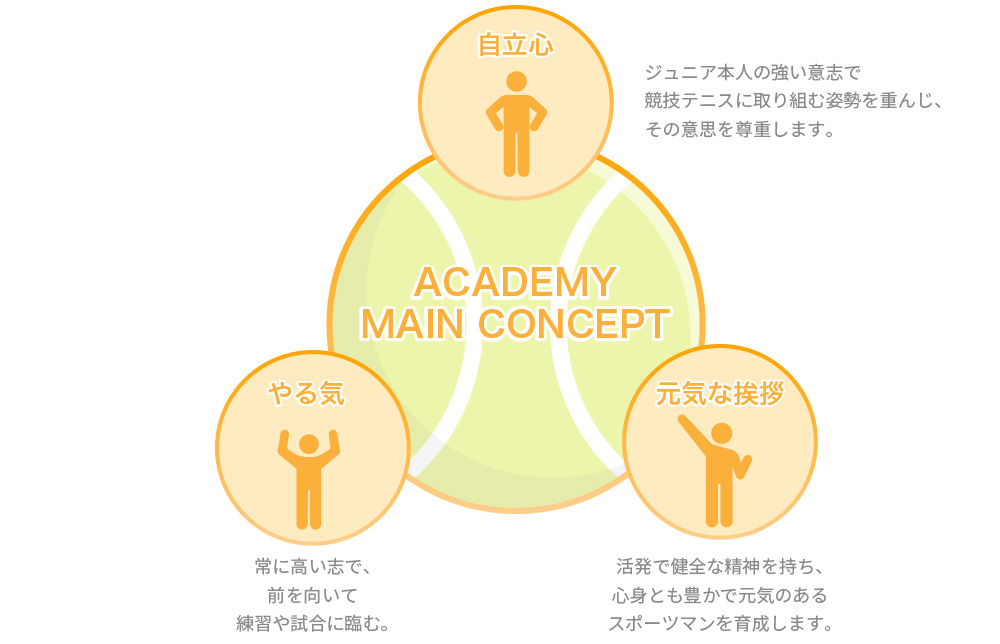 テニスを競技として取り組み「自立心」「やる気」「元気な挨拶」をメインコンセプトに